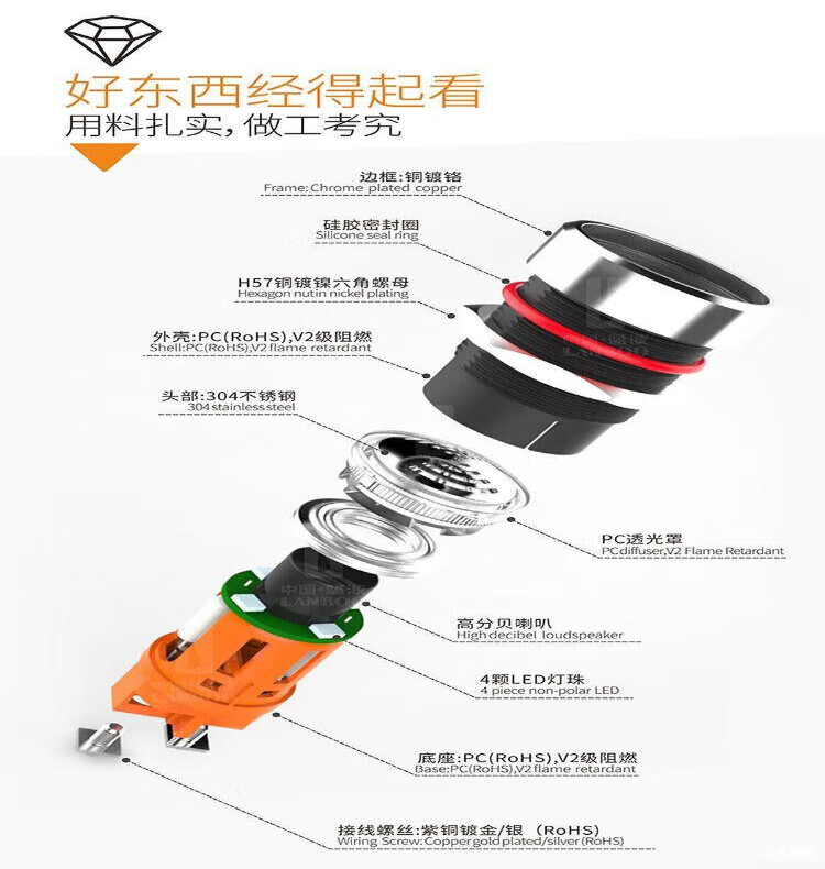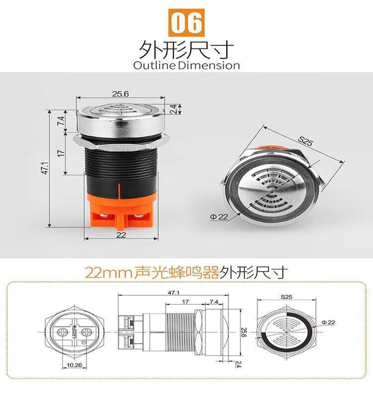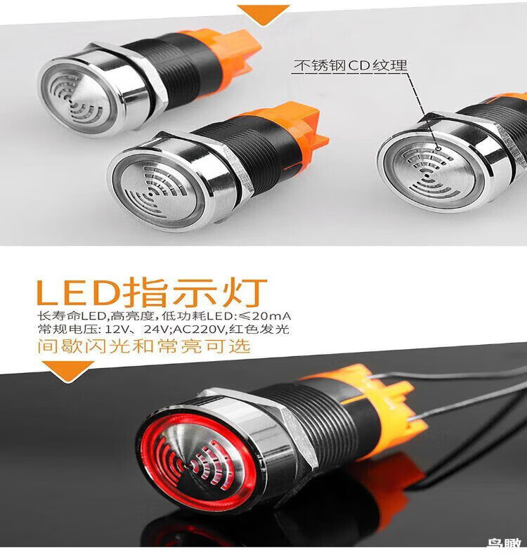 Buzzer with light new product 22mm metal flash alarm stainless steel head bright LED red 12V red
