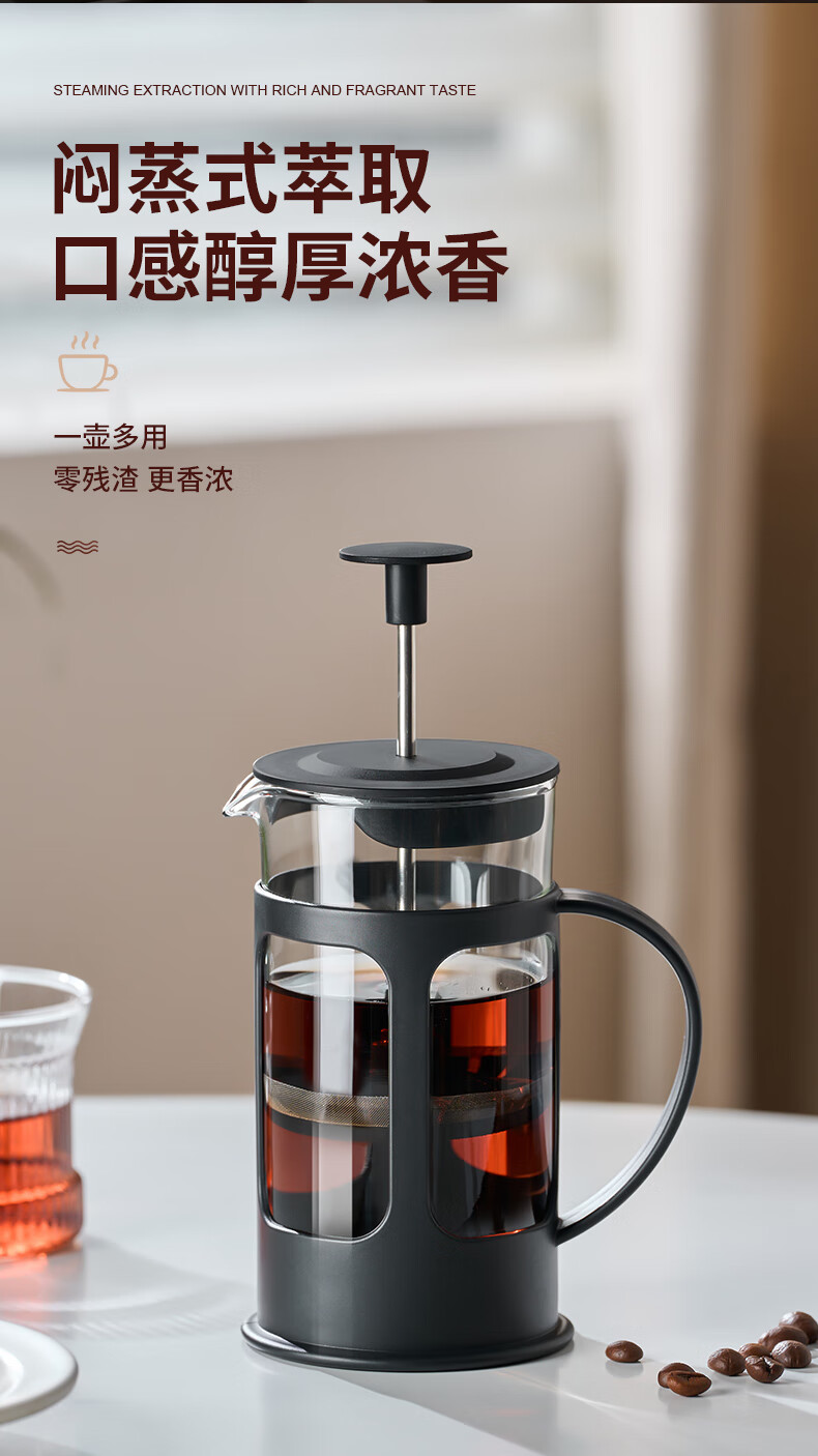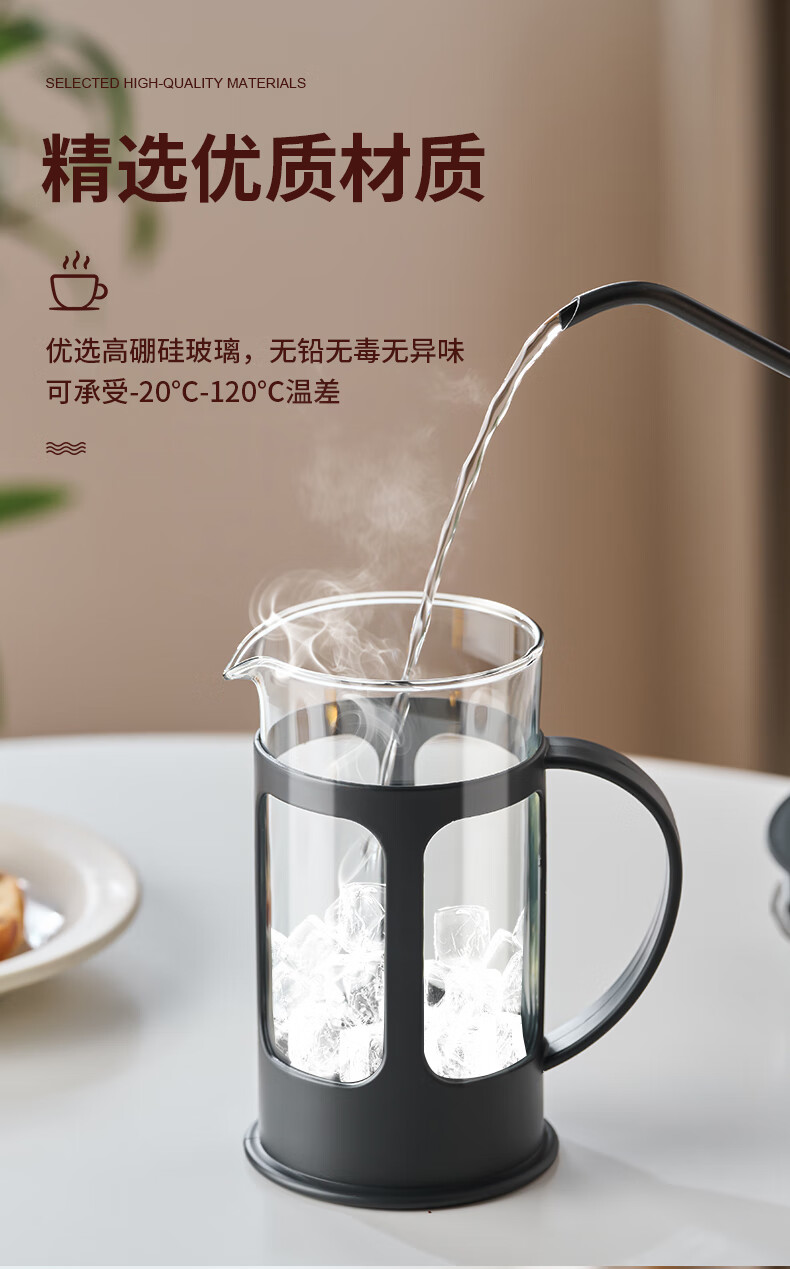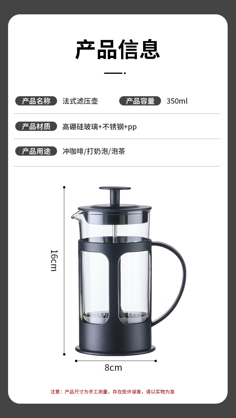 OUSLIFE glass French press pot hand-brewed coffee pot household coffee machine coffee filter filter cup French press pot glass French press pot 350ml