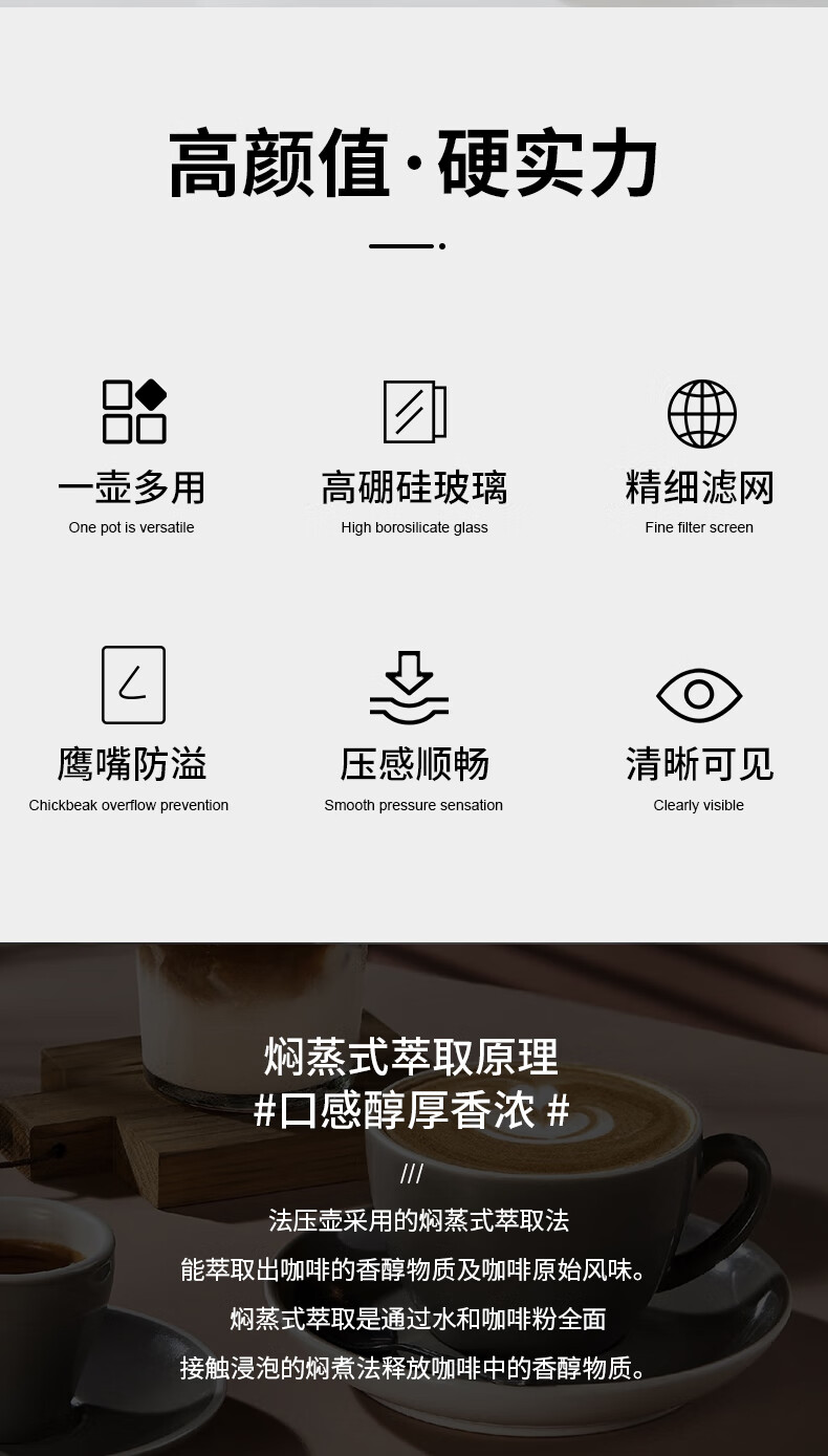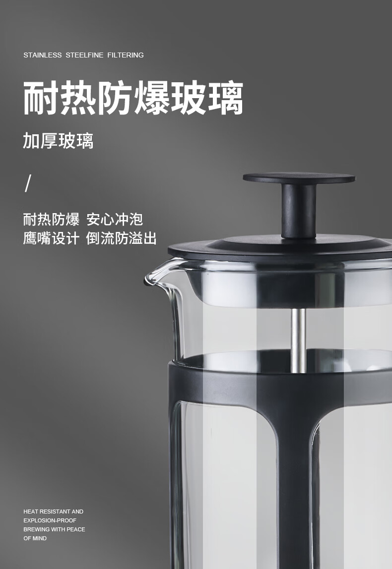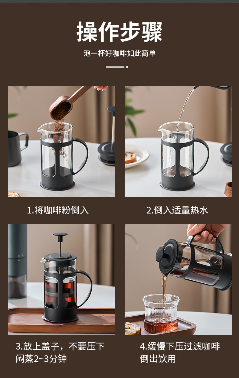 OUSLIFE glass French press pot hand-brewed coffee pot household coffee machine coffee filter filter cup French press pot glass French press pot 350ml