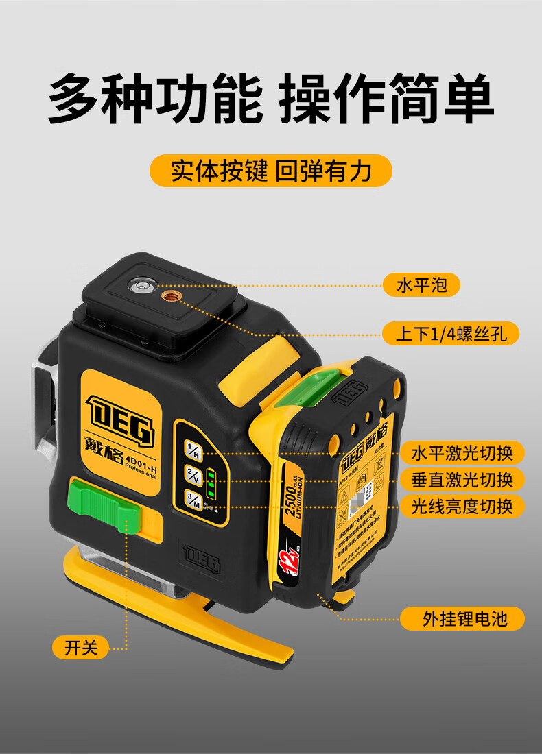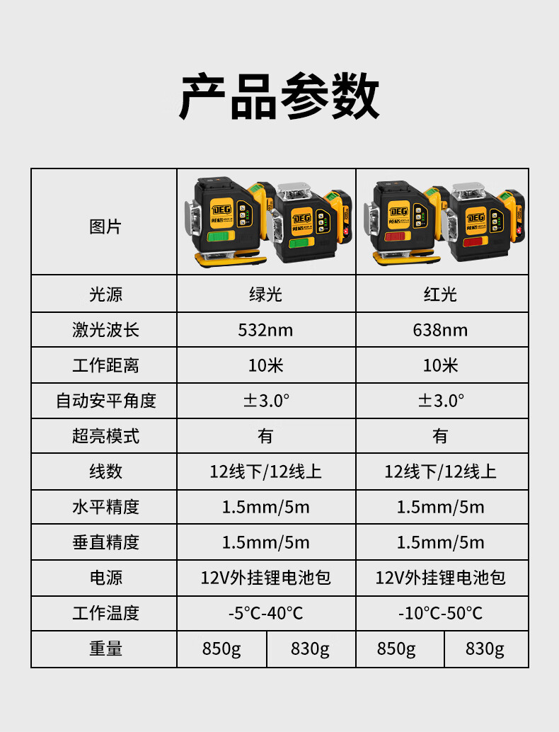Daigle level Hercules 12-line high-precision strong light thin line ultra-bright green light laser infrared automatic leveling thin line green light 12-line standard lower level