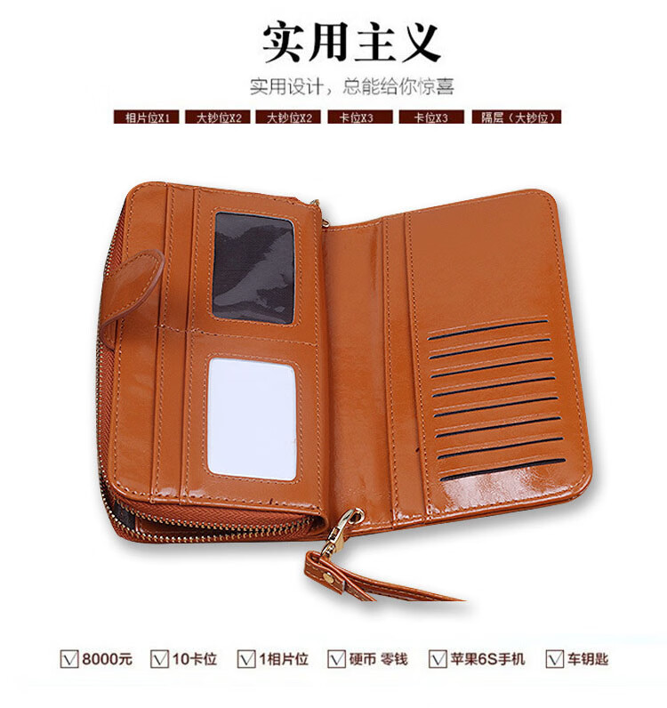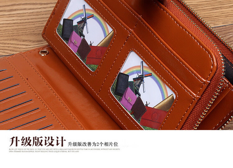 New wallet for women, multi-functional, large-capacity buckle for mobile phone, cash, shopping, elegant and convenient long clutch bag, brown