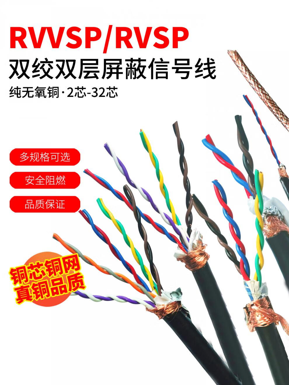 Twisted pair shielded wire 2/4/6/8/10/12 multi-core control cable 485 communication line signal line RVVSP/RVSP RVSP twisted pair 2*0.3 square circle 100 meters