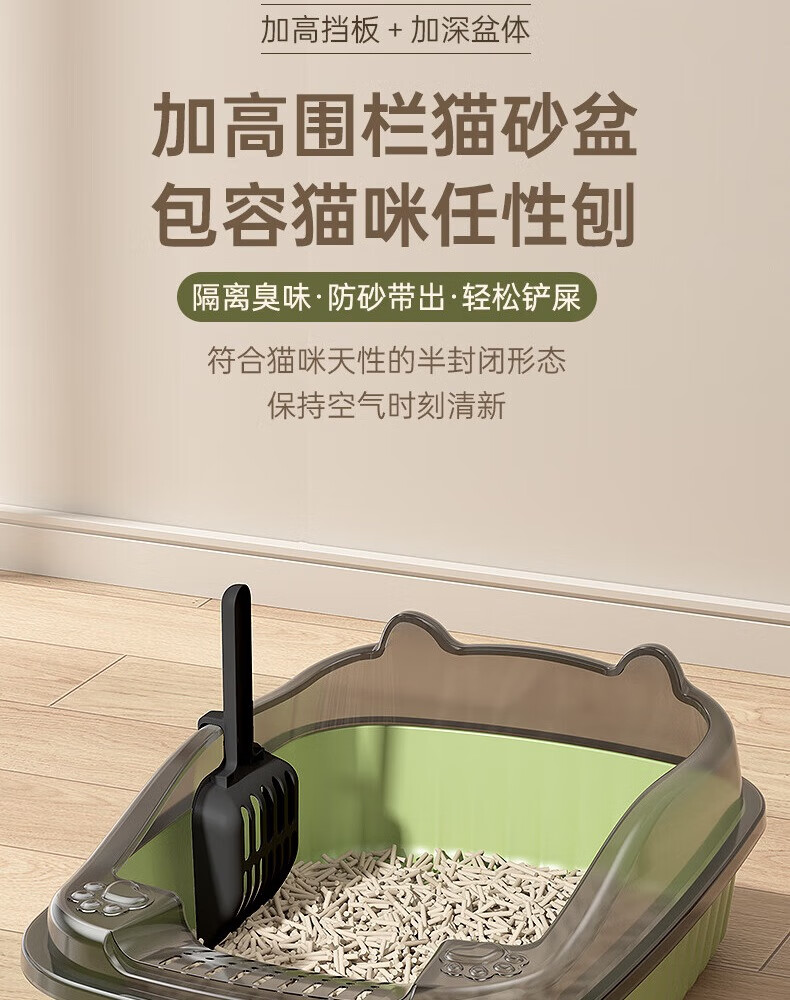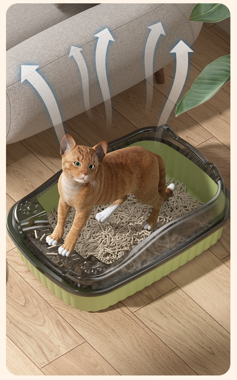 Luyou cat litter box extra large anti-splash extra large anti-odor waterproof semi-enclosed small storage rack fully open extra large gray cat litter box