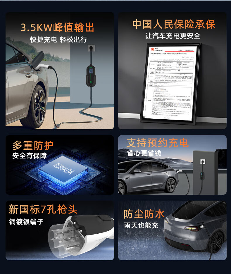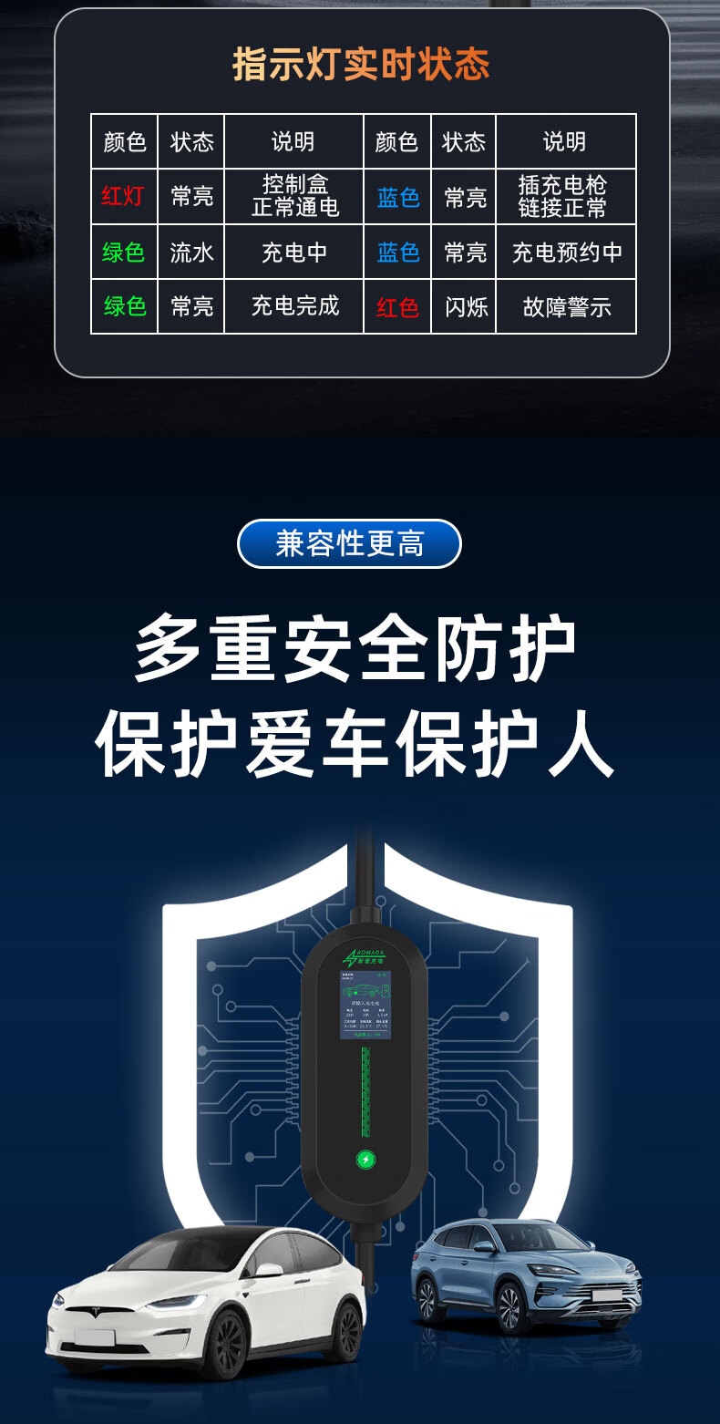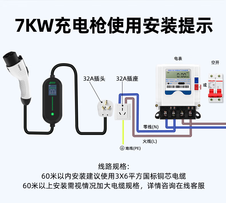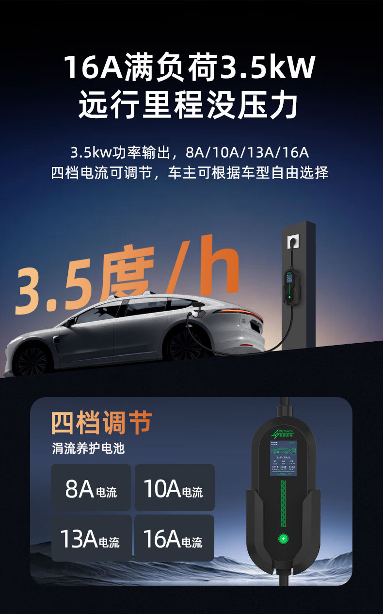 Kangshun Futon Landscape Intelligent Blue G7 car charger 3.5kw/7kw portable grounding-free home AC charging pile Landscape Intelligent Blue G7 display model 3.5kw 8A/16A two-speed switch 5 meters cable