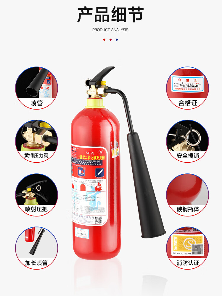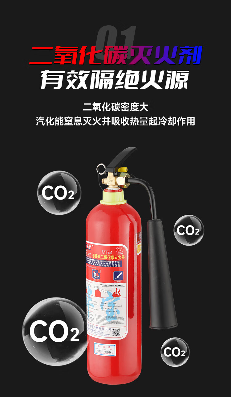 Carbon dioxide fire extinguisher MT2/3/5/7kg portable dry dry ice CO2 machine room gas book fire extinguisher 5kg portable carbon dioxide