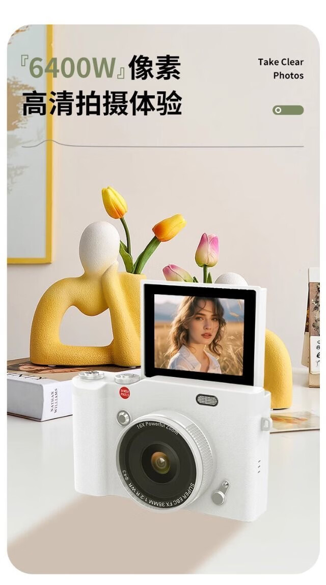Yingshunda Flip Screen Selfie Digital Camera Student Entry CCD Camera for Photography and Travel Special Retro Vlog Camera Y02 White* Flip Screen Selfie Digital Camera with 16x Zoom Standalone Camera No Card Cannot Transfer Mobile Phone Videos