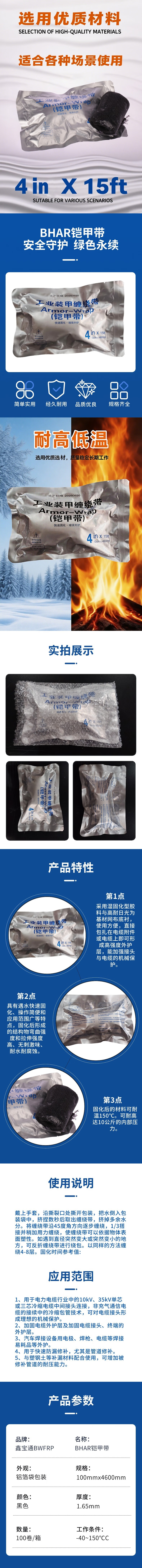 BWFRP Xinbaotong HBAR Armor Belt Industrial Armor Wrap Belt Waterproof Protective Armor Belt Glass Fiber Black 100mm*4.6m/roll