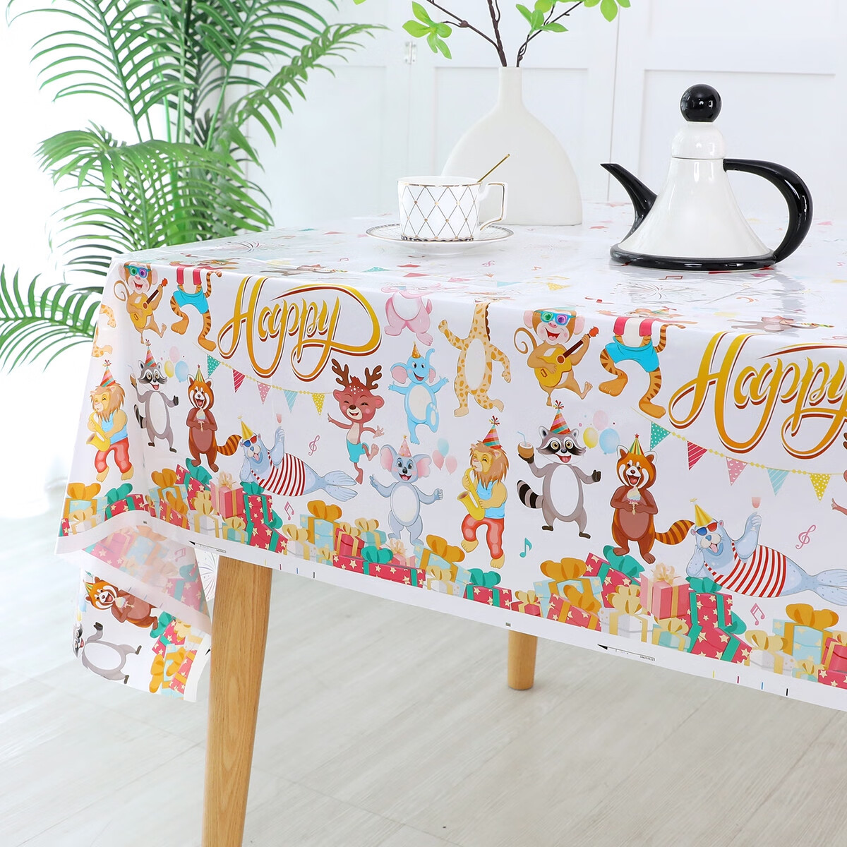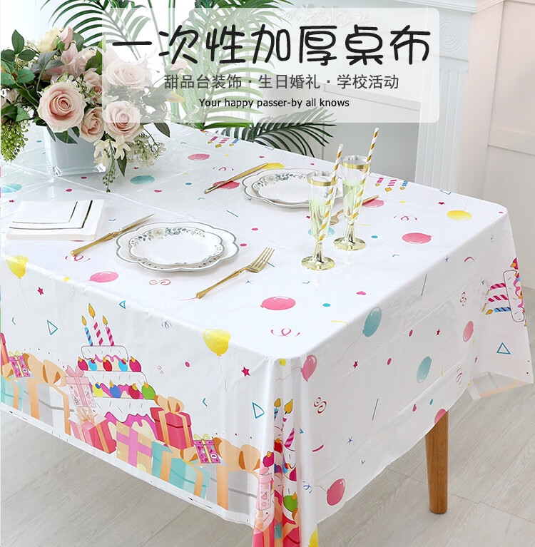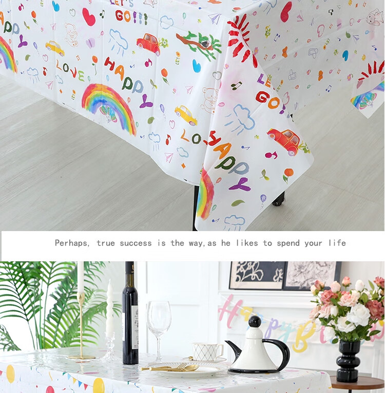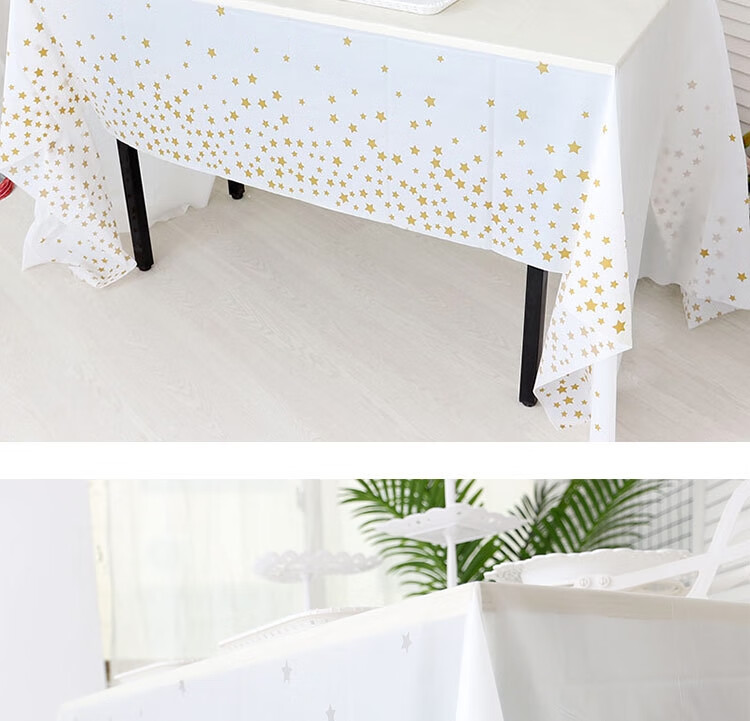 Fantasy birthday party tablecloth children's party layout dessert table decoration disposable six-piece cloth plastic long colorful five-pointed star tablecloth