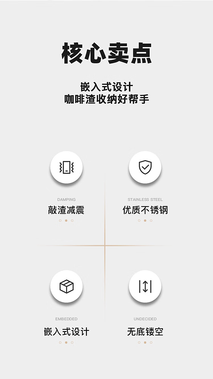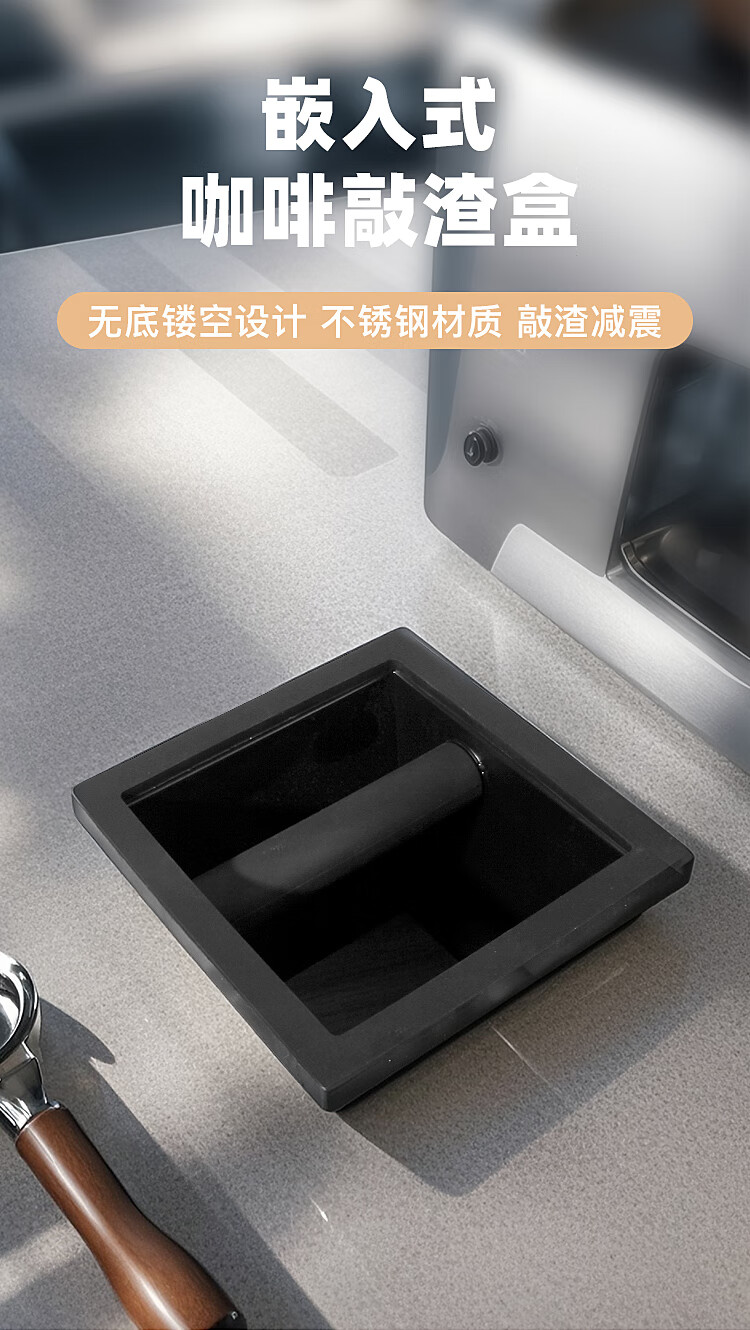 Stainless steel embedded square dregs bucket to store coffee residues coffee knocking bar tabletop box powder dregs bucket