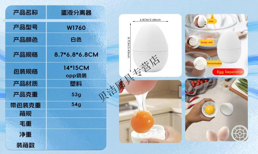 Beijingjie household daily good things egg yolk egg white protein egg liquid egg separator kitchen baking egg gadget plastic egg yolk egg white separator milky white