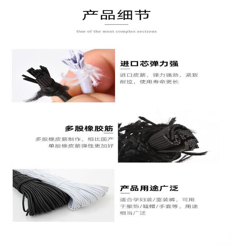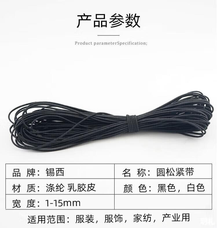 Strap elastic rope wholesale high elastic round elastic rope black thin round elastic rope rubber band lounge chair rope black diameter 3.5 mm (50 meters)