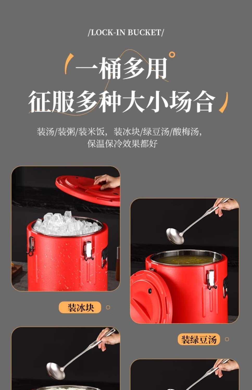Qinkai Insulated Bucket Commercial Stall Milk Tea Bucket Large Capacity Ice Bucket Portable Stainless Steel Soup Bucket Temperature Locking Refrigerated Bucket Special Thickness Non-insulation Refundable 20L No Faucet Stanley + Sales Far Away