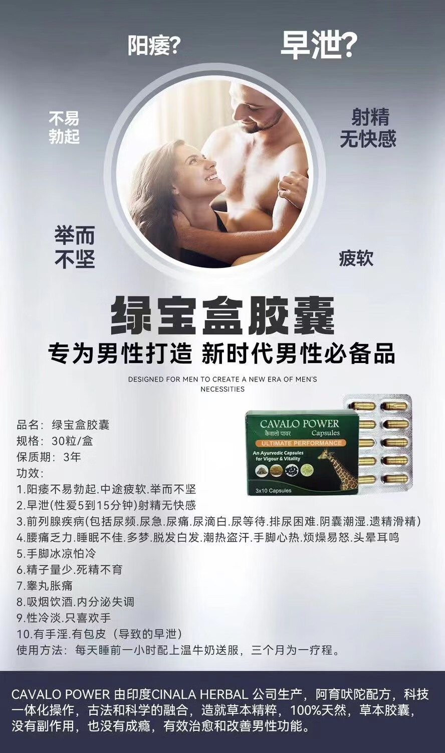 SIKANDER-E-AZAM India's original imported green treasure box capsule CAVALO male oral plant conditioning to improve impotence small green bottle upgraded version of the green treasure box 30 capsules* box