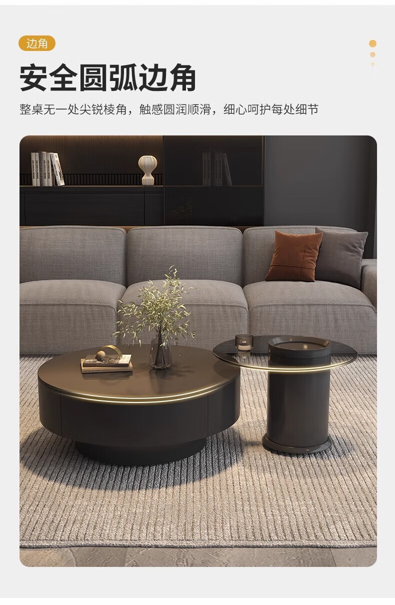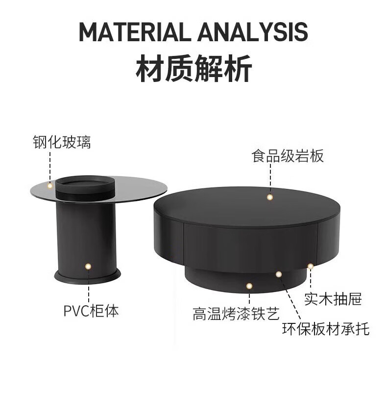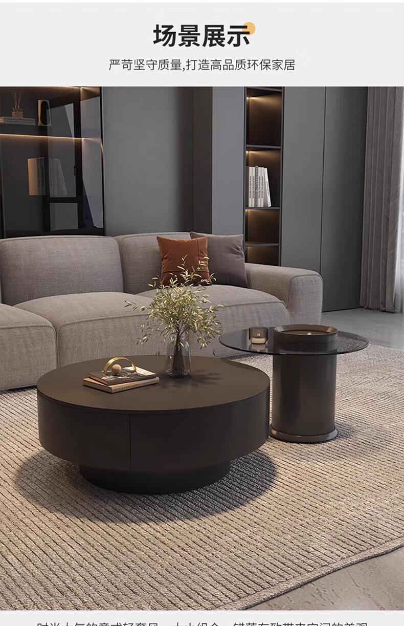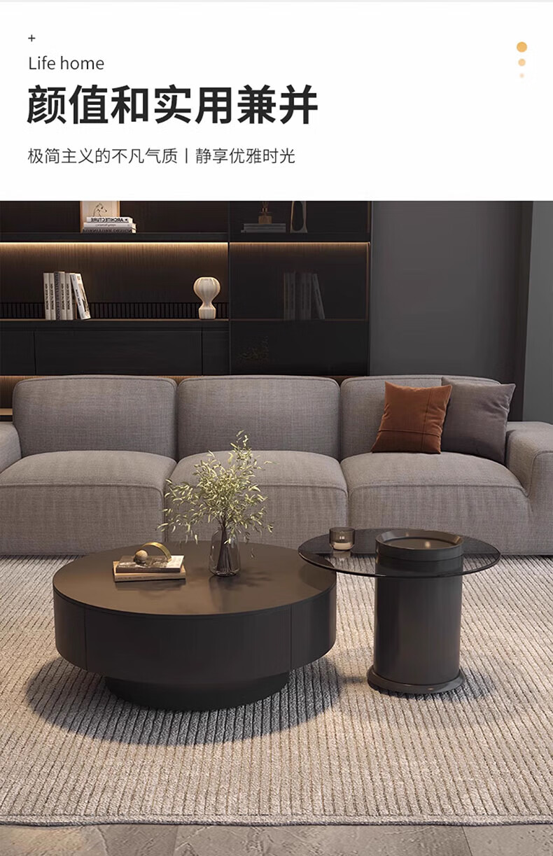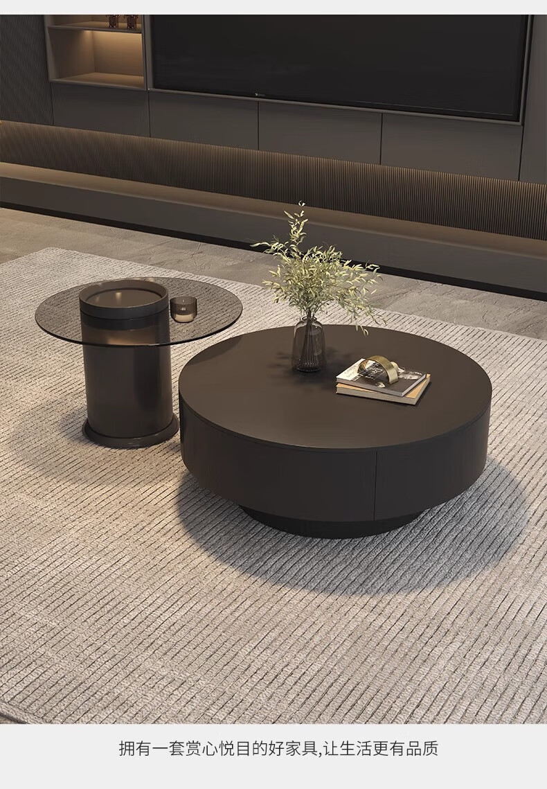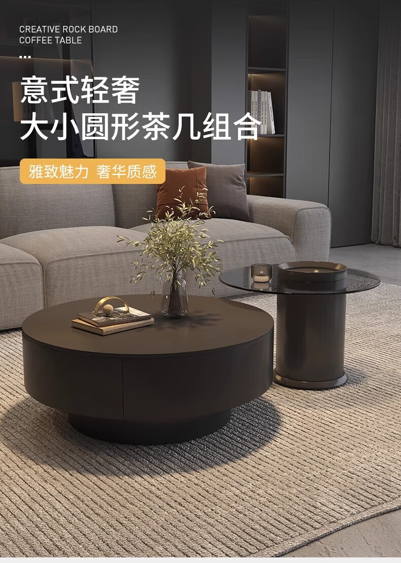 Hua Beisen coffee table black glass Italian minimalist slate living room home light luxury high-end simple round combination Baoge black glass surface + gray glass 80+50 cabinet shipped as a whole