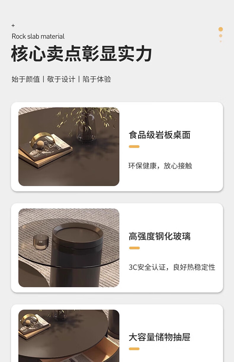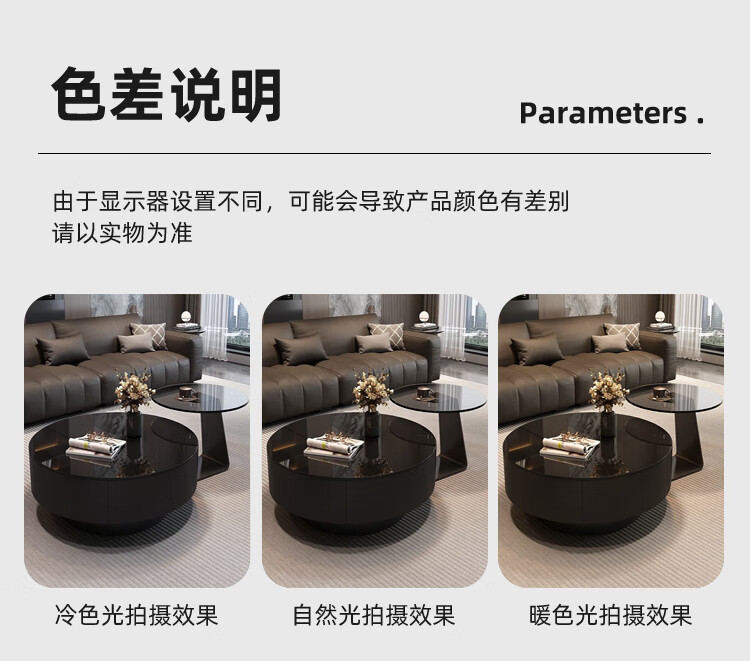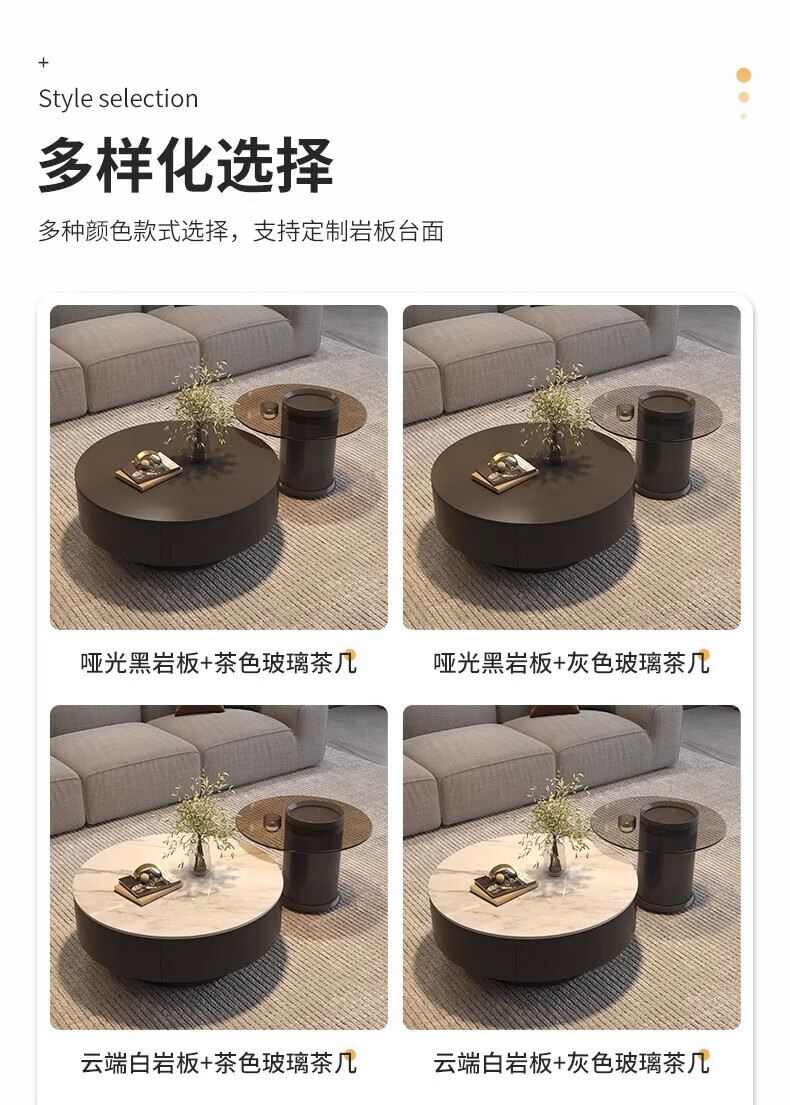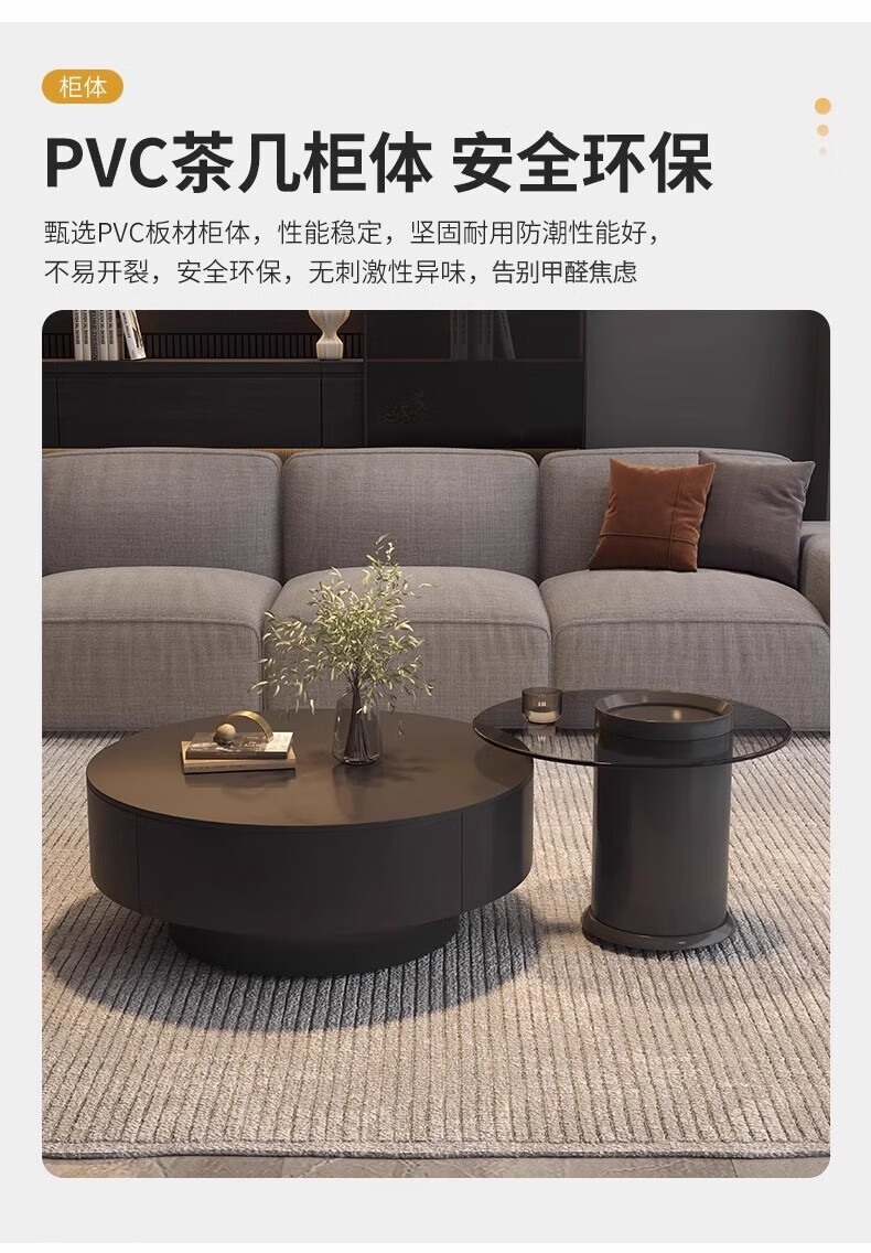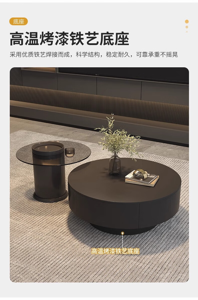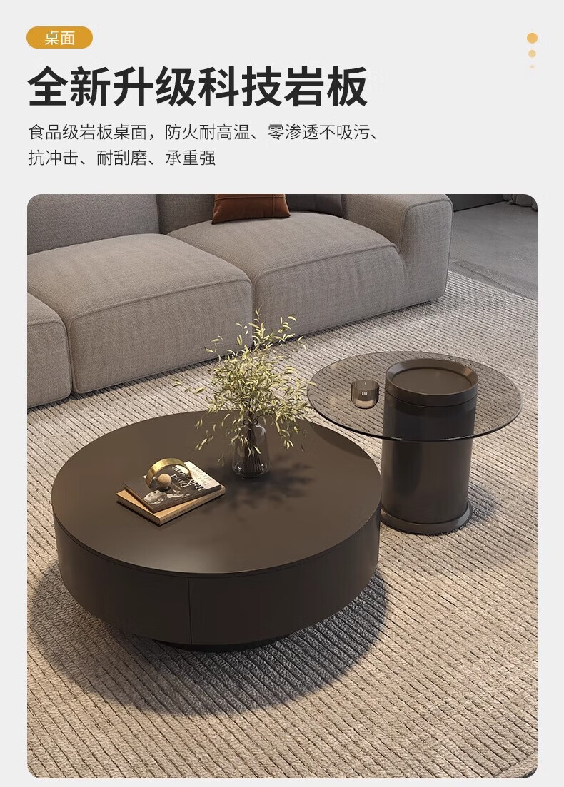 Hua Beisen coffee table black glass Italian minimalist slate living room home light luxury high-end simple round combination Baoge black glass surface + gray glass 80+50 cabinet shipped as a whole