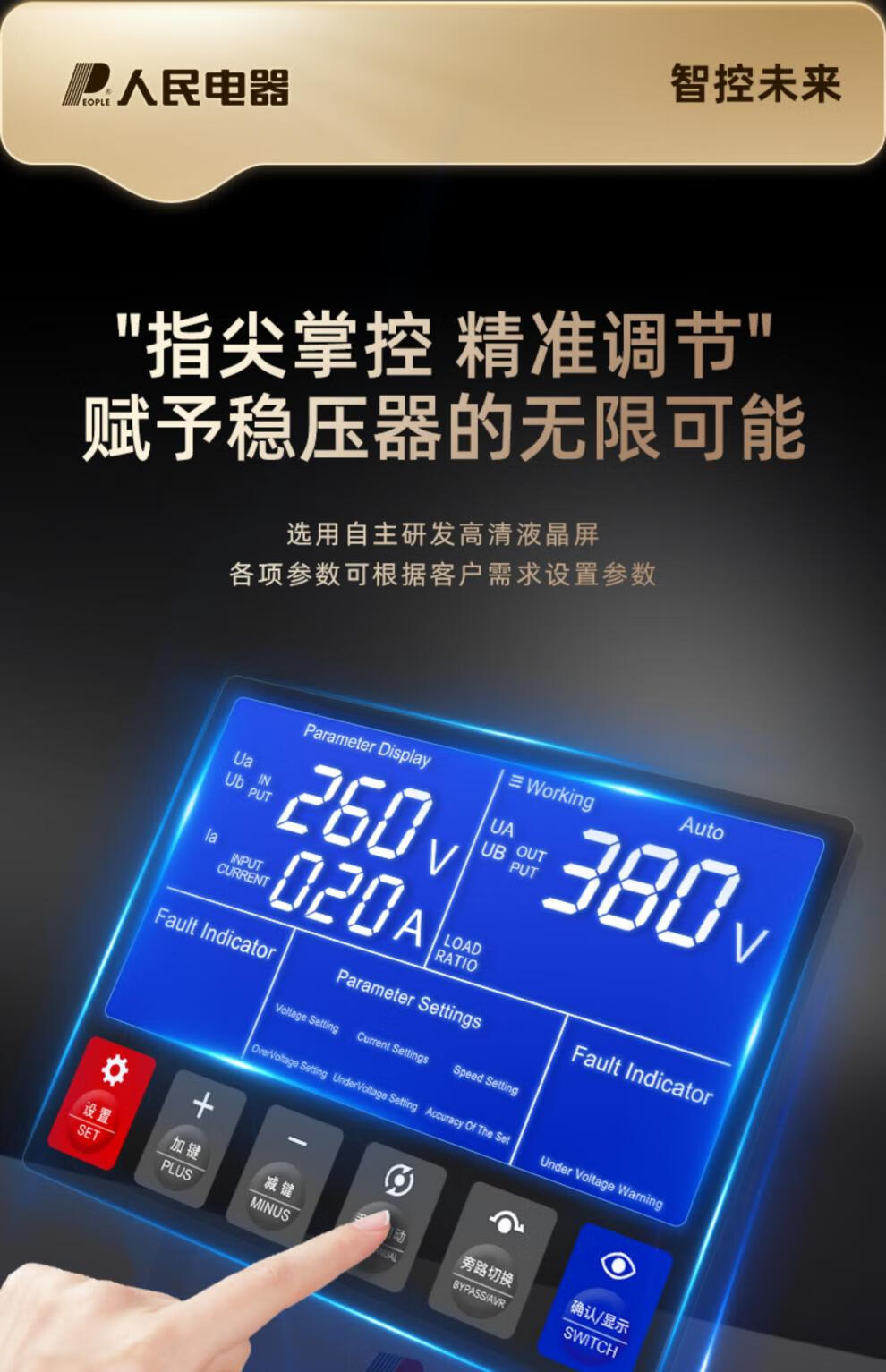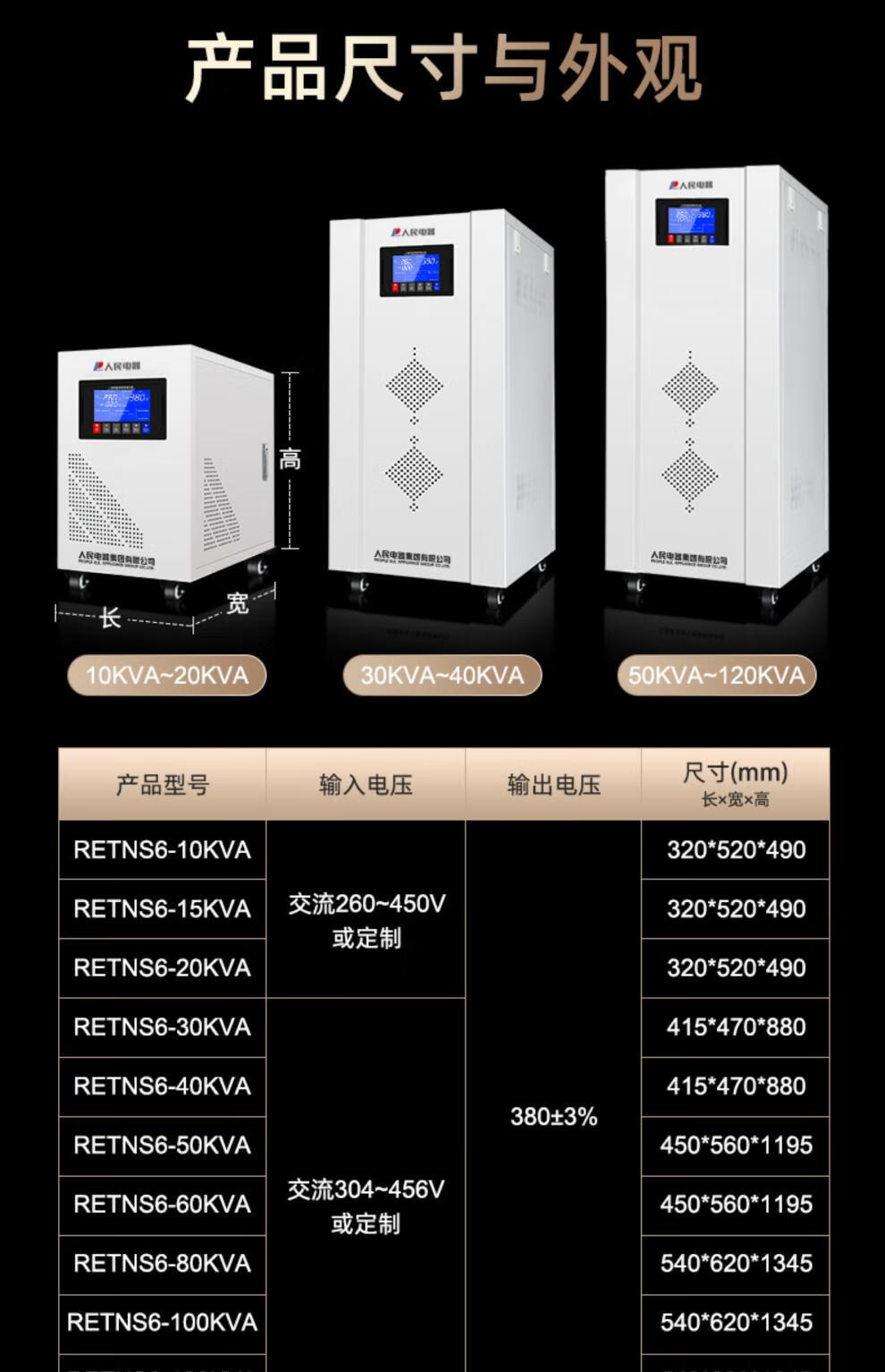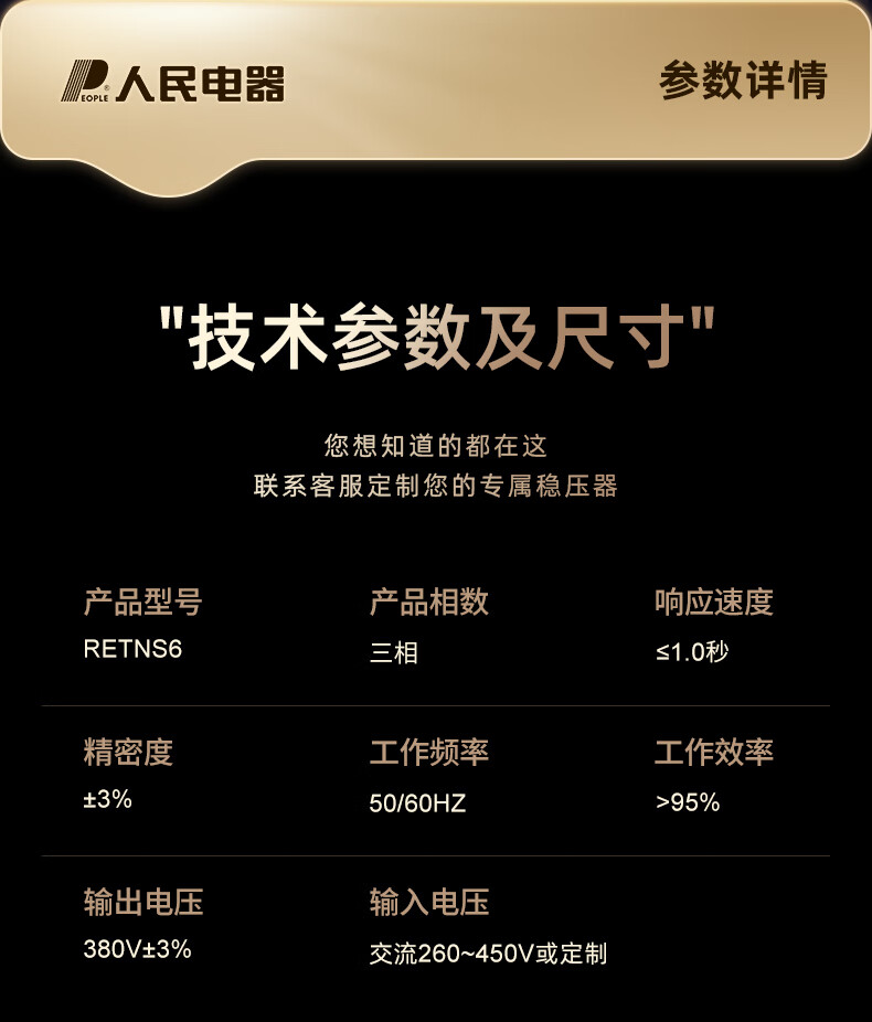 People's Voltage Stabilizer 380v three-phase four-wire high-power high-precision fully automatic industrial 30/50/100kw digital display three-phase voltage stabilizer RETNS6-10KVA