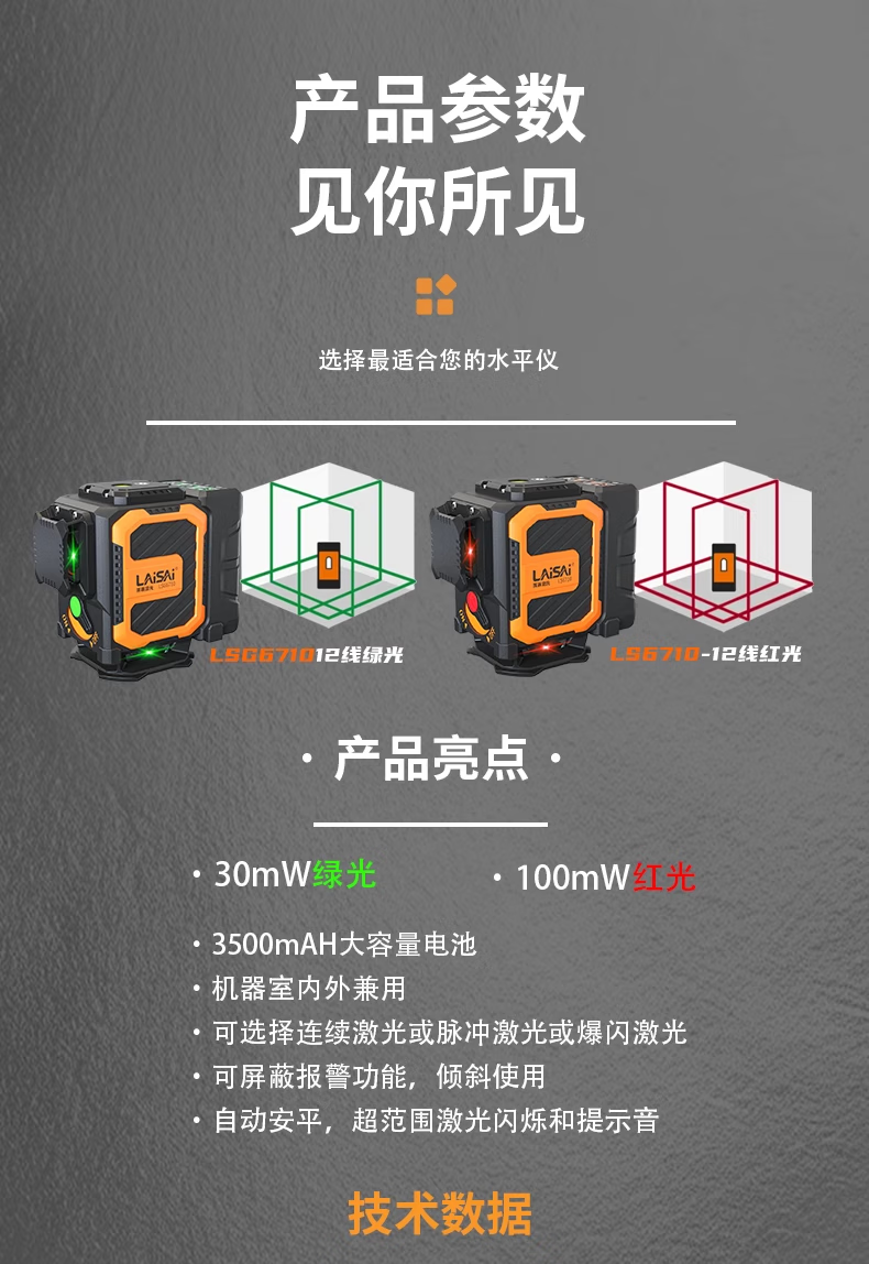 Laser Laser's new Laser laser level 12 lines 6710/6700 high-precision strong light thin line 16 lines 6720 ground meter green light 12 lines upper level line
