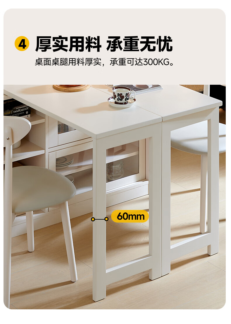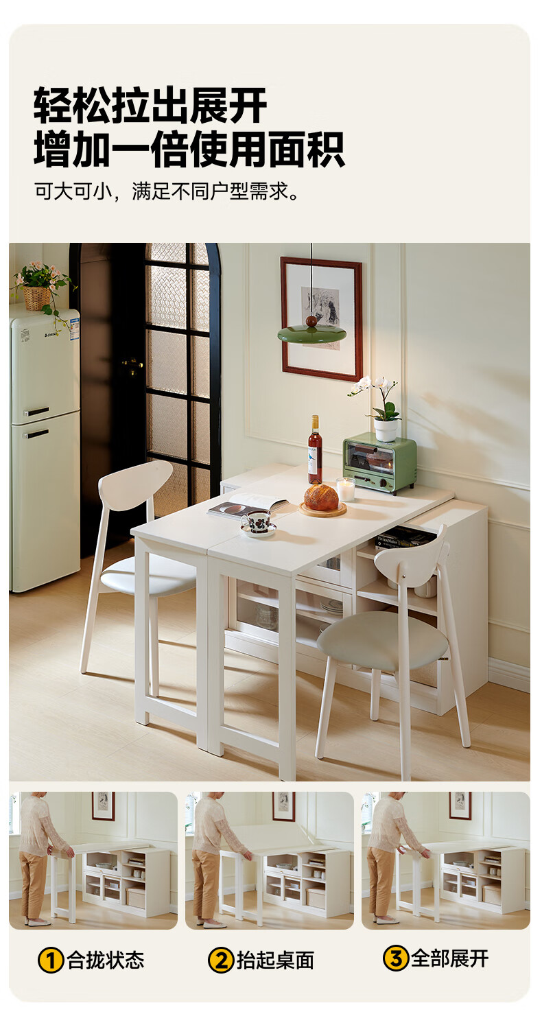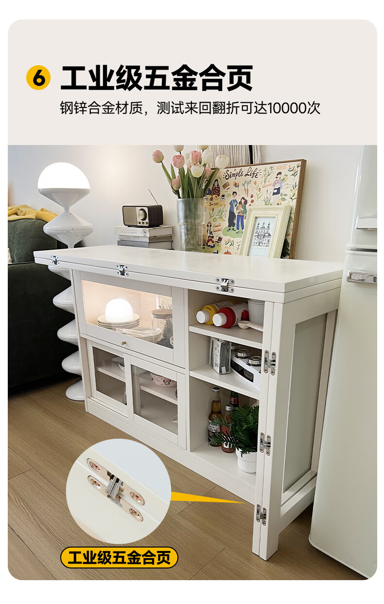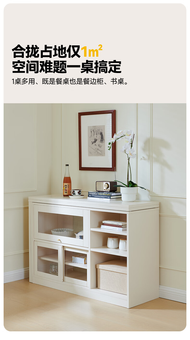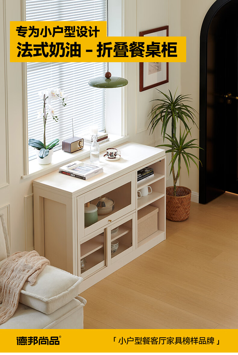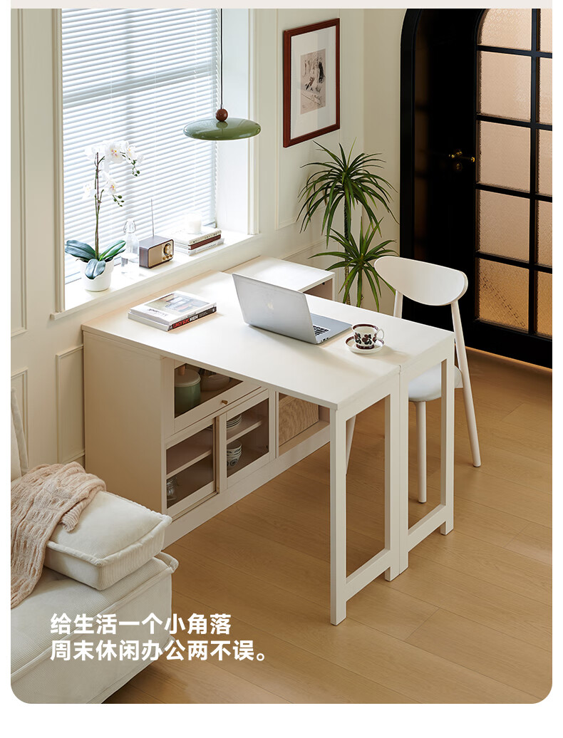 Debon Shangpin sideboard dining table integrated solid wood wall storage cabinet small household French cream style foldable dining table 120*40cm 1 table 2 chairs Windsor chair