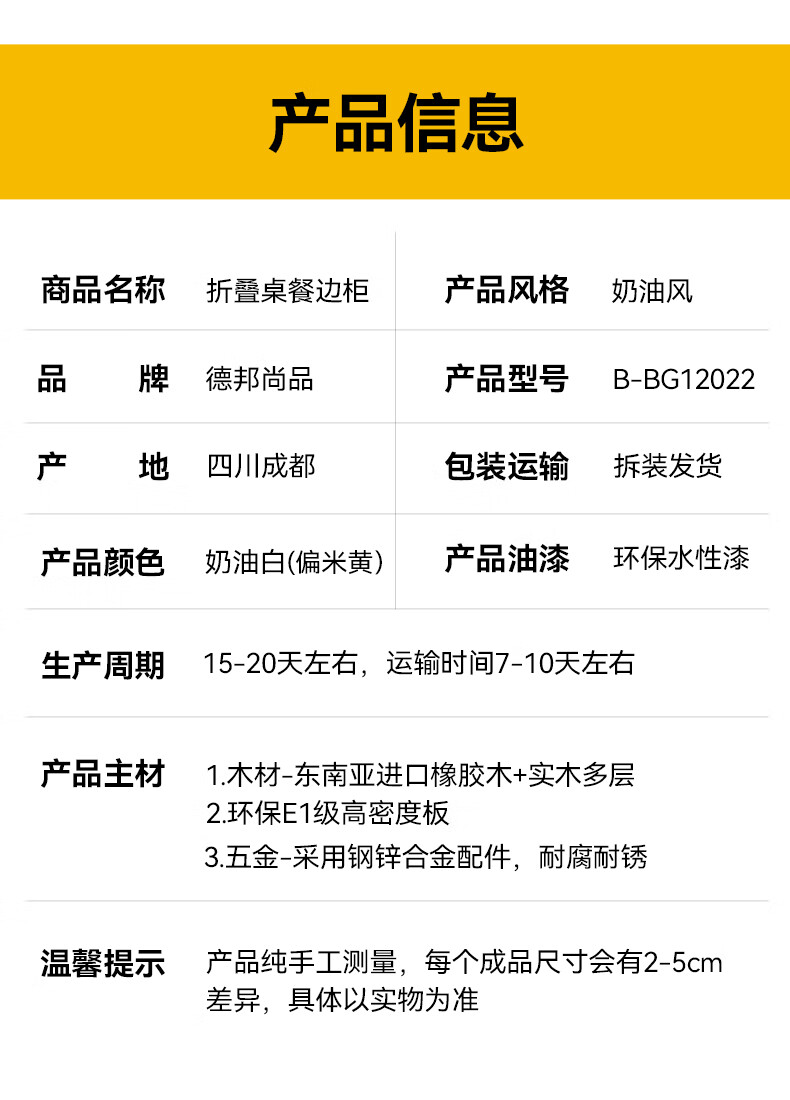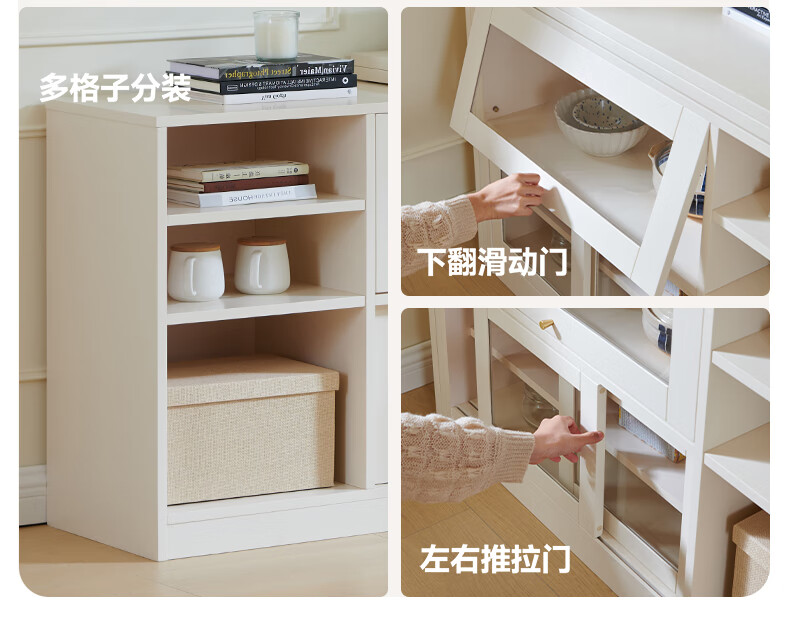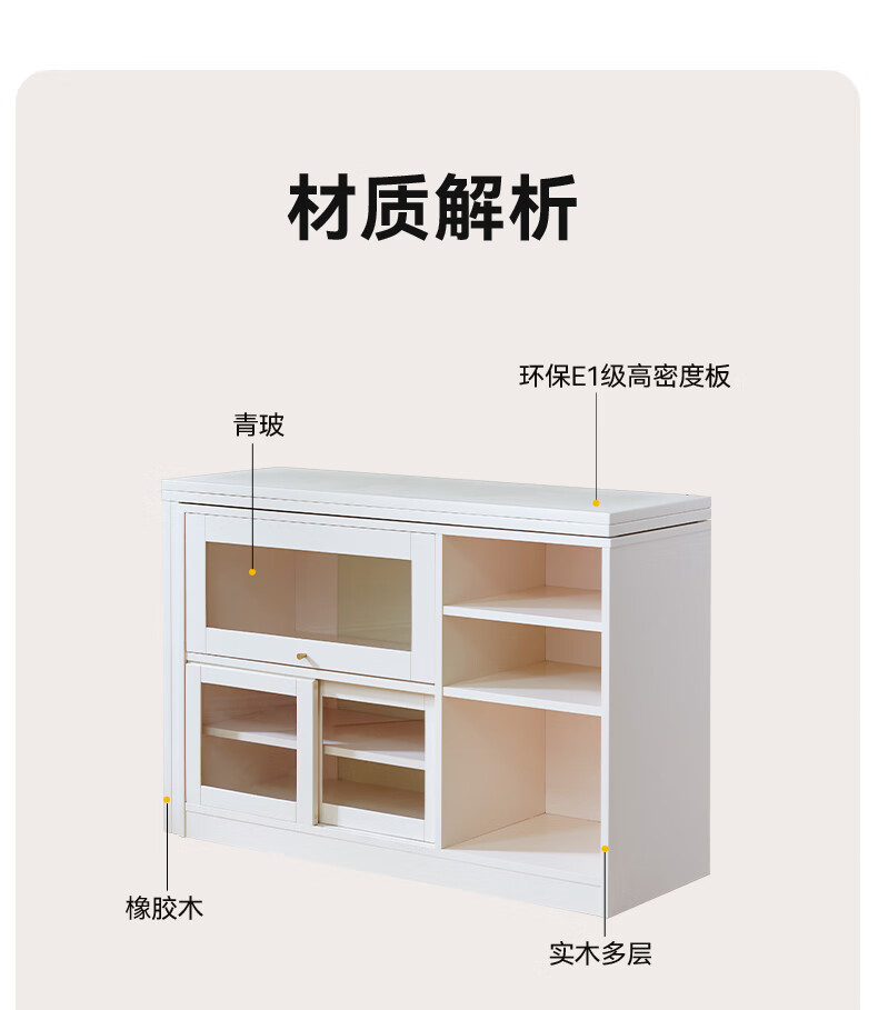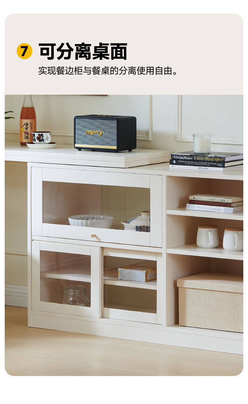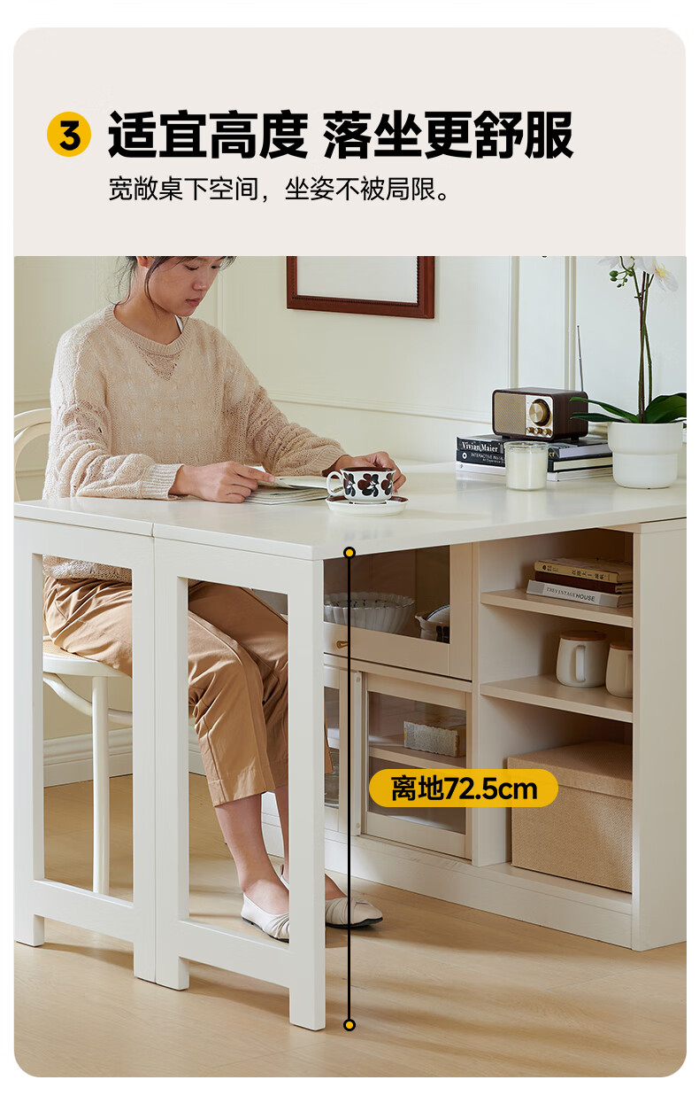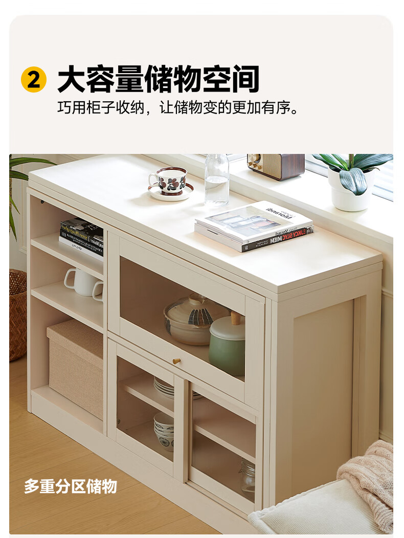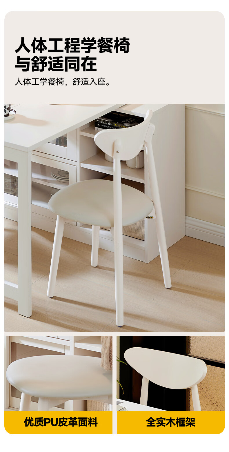 Debon Shangpin sideboard dining table integrated solid wood wall storage cabinet small household French cream style foldable dining table 120*40cm 1 table 2 chairs Windsor chair