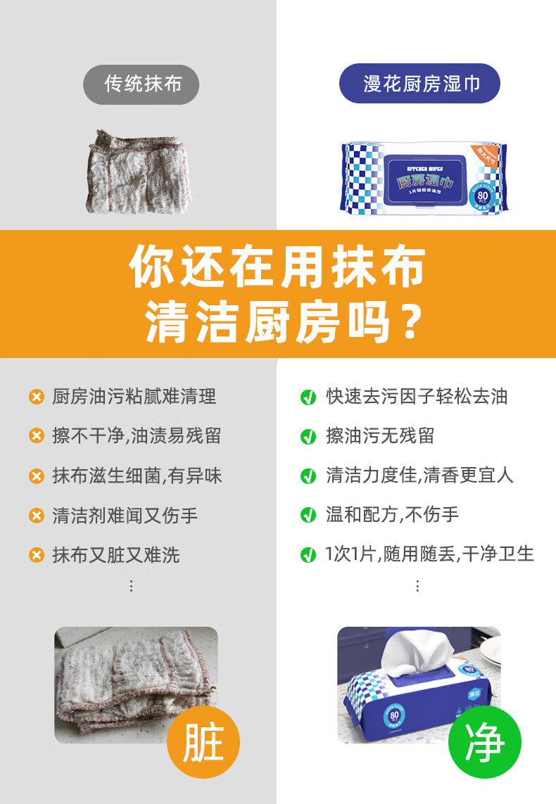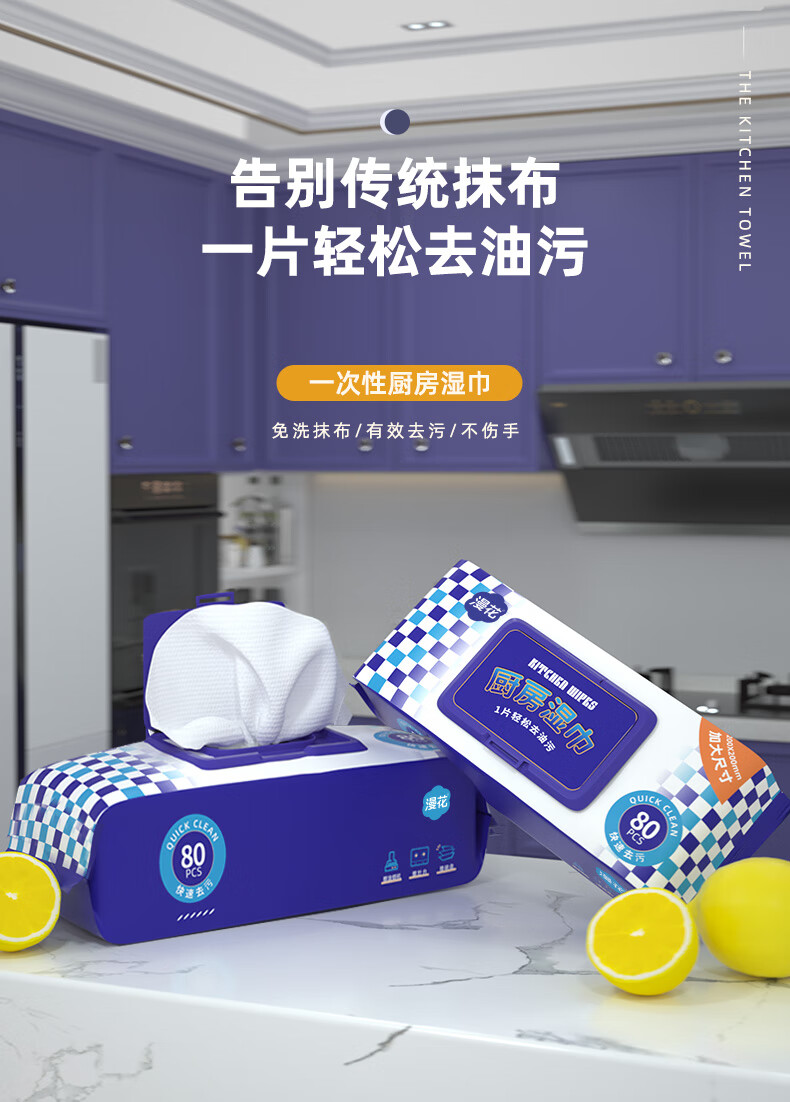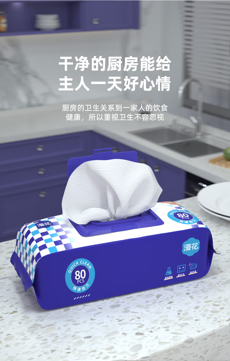 25cm long, Manhua kitchen wipes 80 puffs, large and thickened, oil stain removal and range hood wipes, 1 layer, 80 puffs*5 pack, kitchen wipes