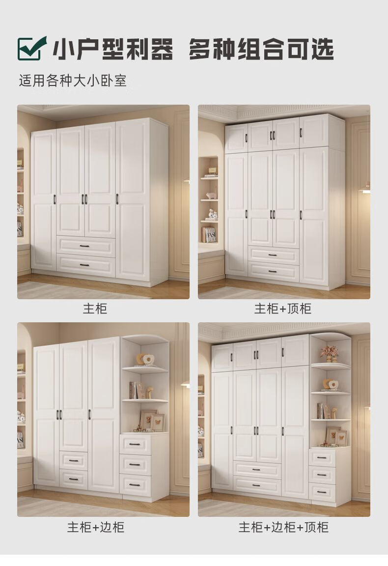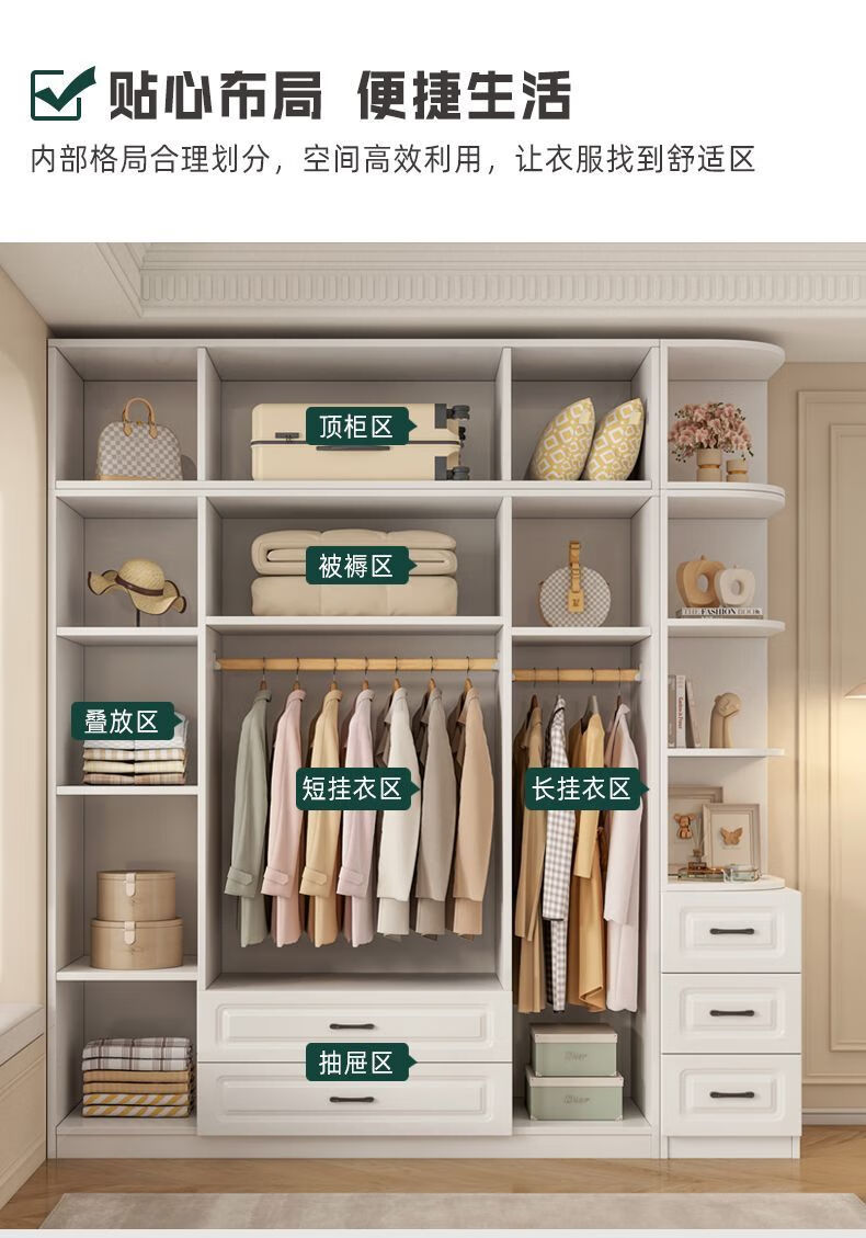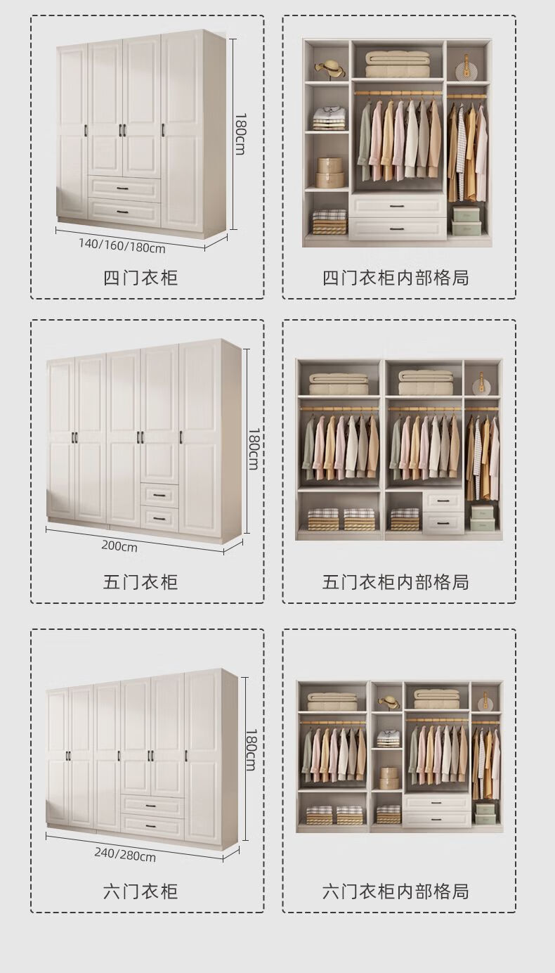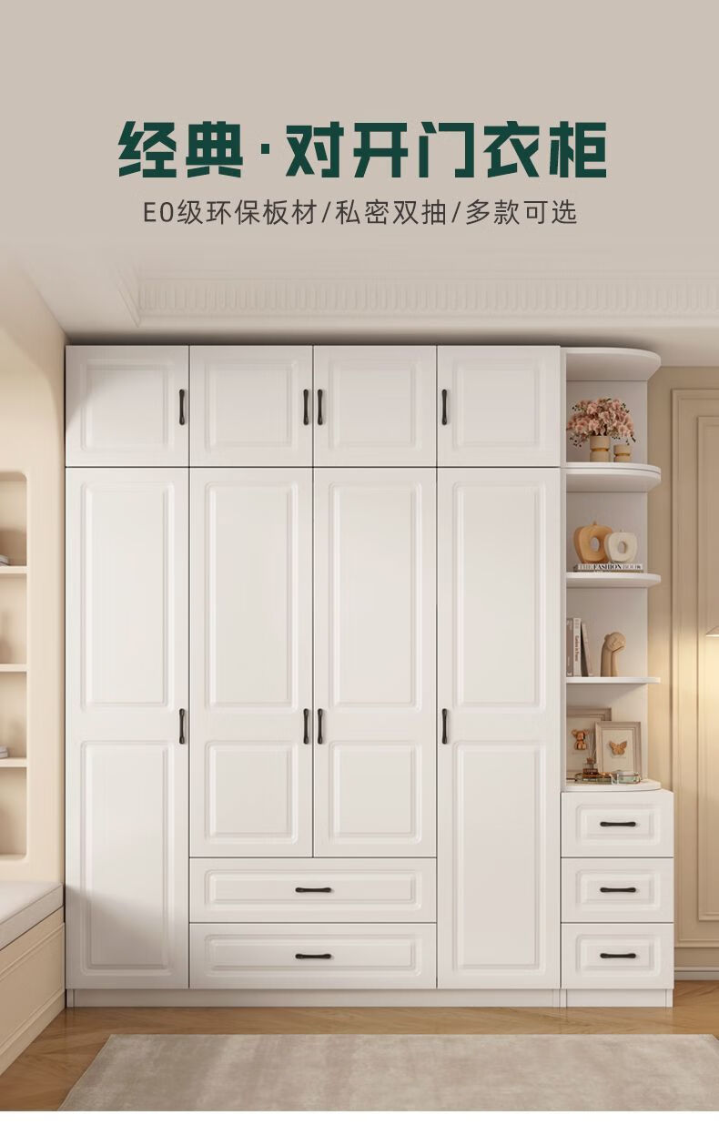 Wen Xinfu Wardrobe Home Bedroom Sturdy and Durable 2024 Rental Room with Drawers European Style Double Door Eco-Friendly Wardrobe 2025 Model Upstairs 50mma Model