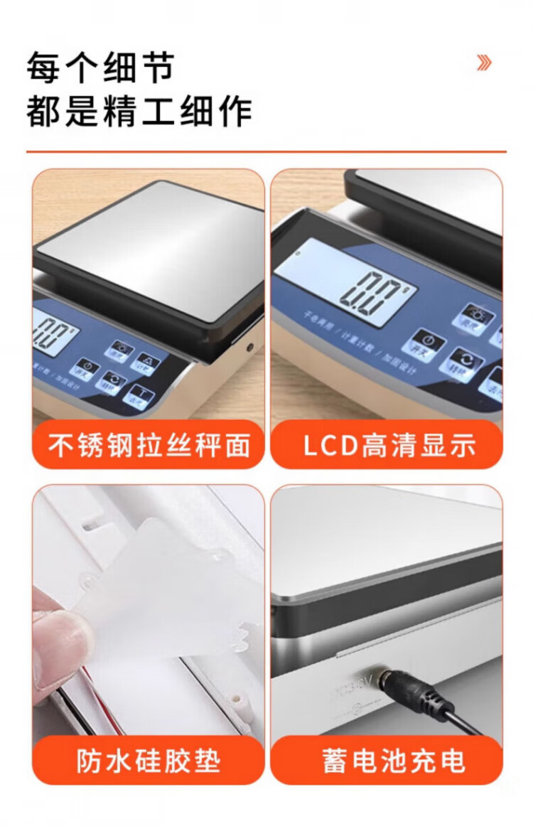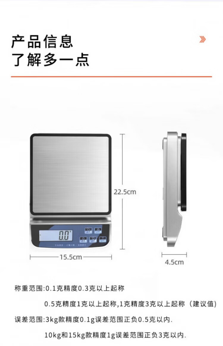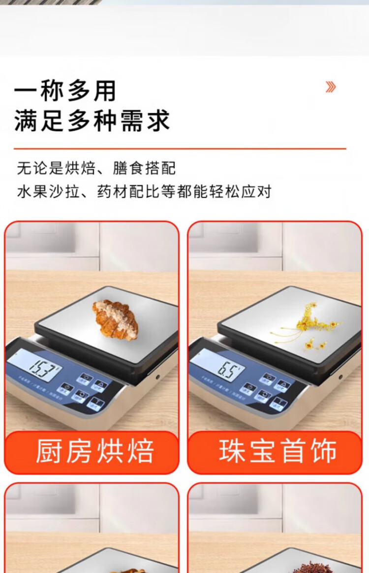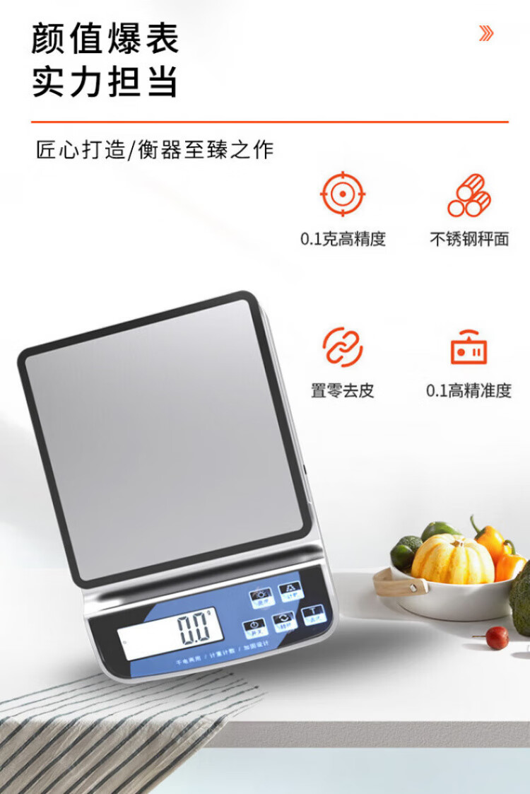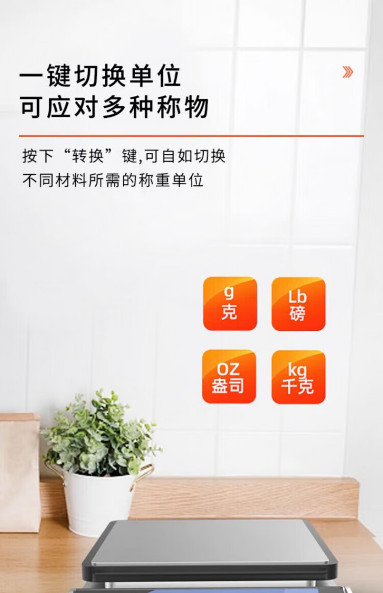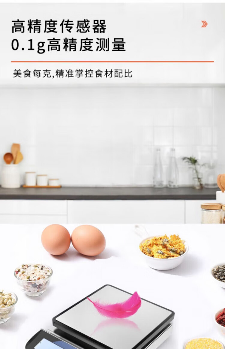 JCZS German brand waterproof electronic scale accurate electronic gram weighing commercial household baked food high-precision small kitchen color-proof charging 5 kg 1 gram