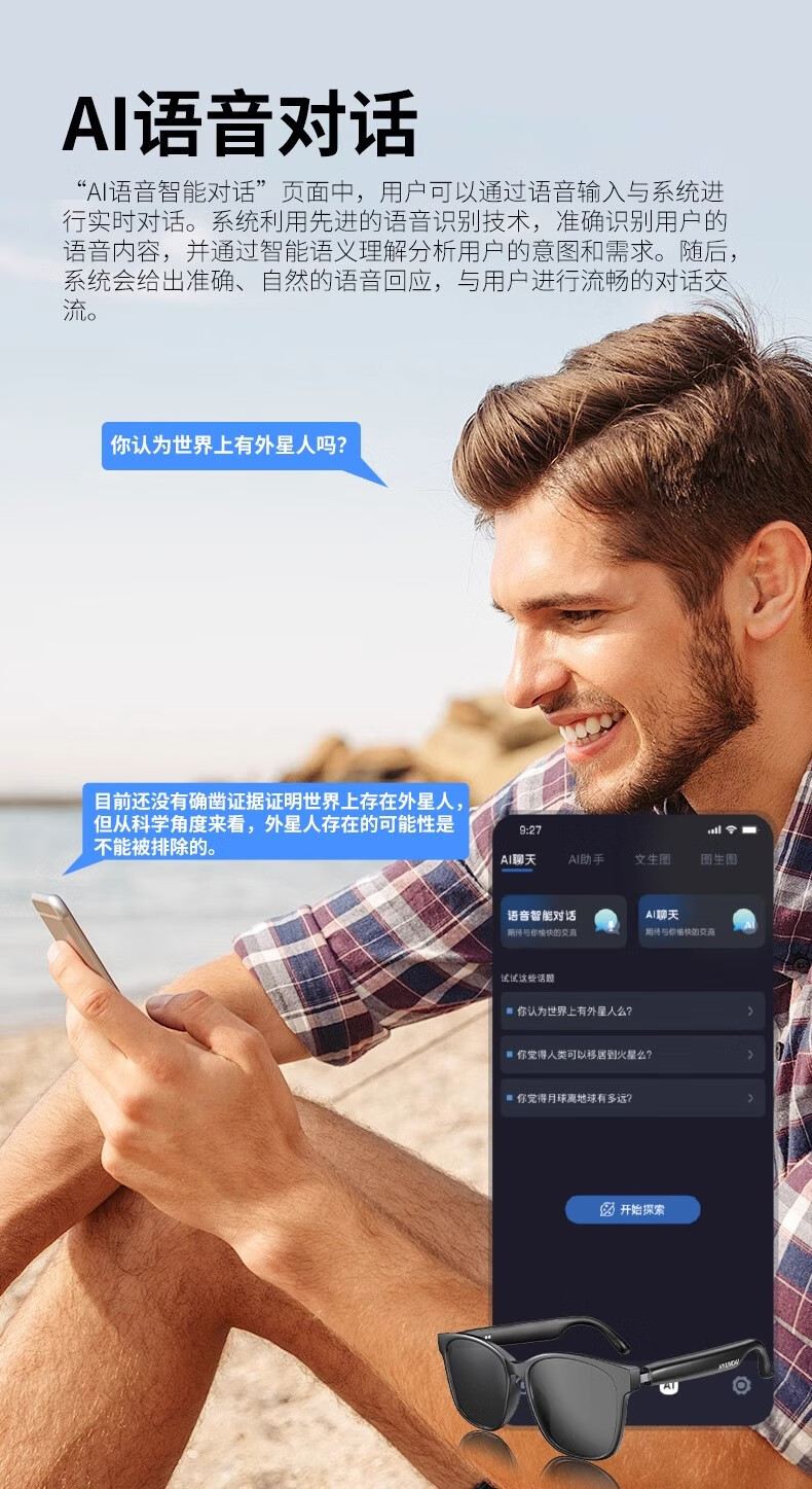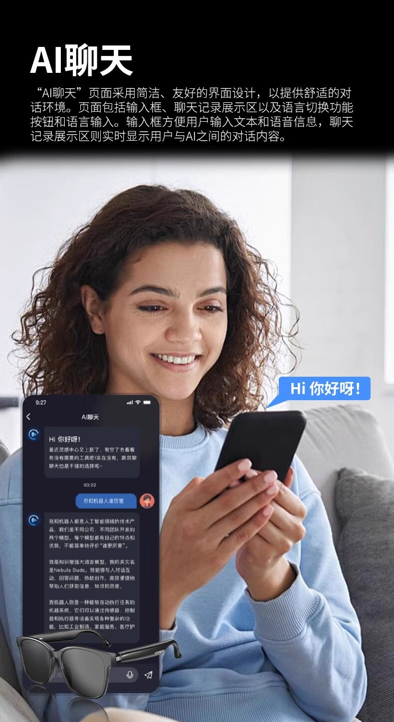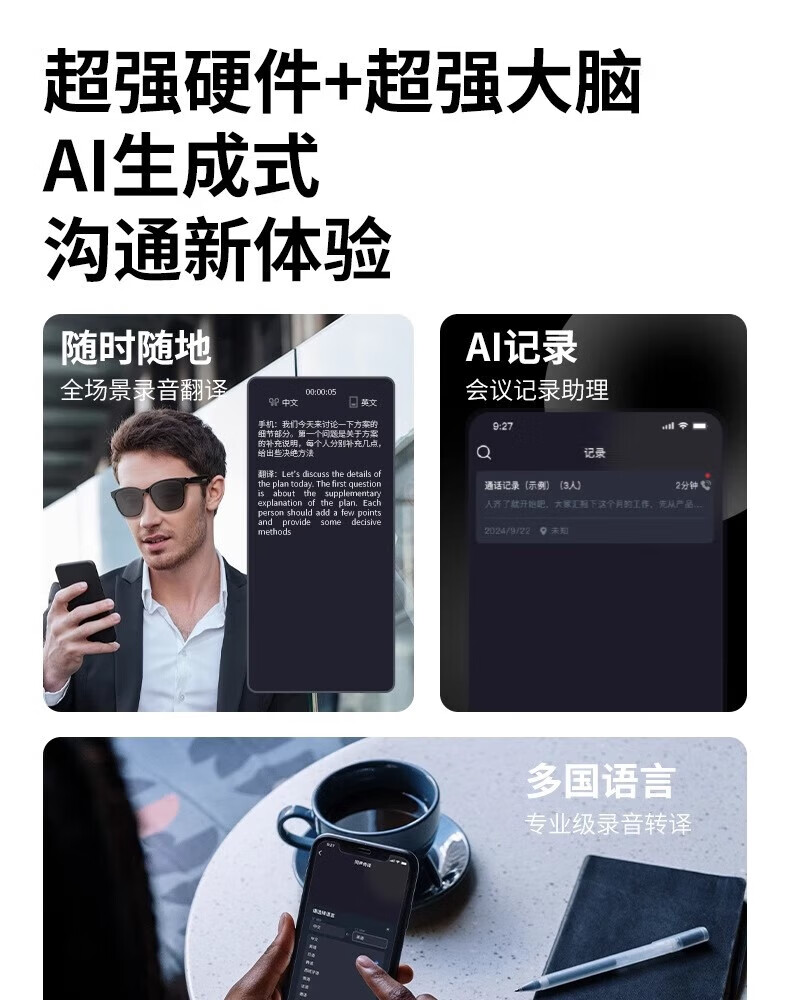 Smart glasses translator Bluetooth headset black HY-C8-ai smart-simultaneous translation