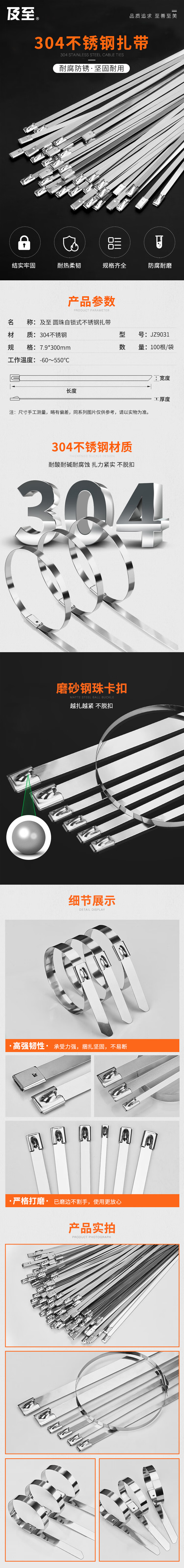 Up to JZ9031 304 stainless steel cable ties 7.9*300mm 100 pieces/bag