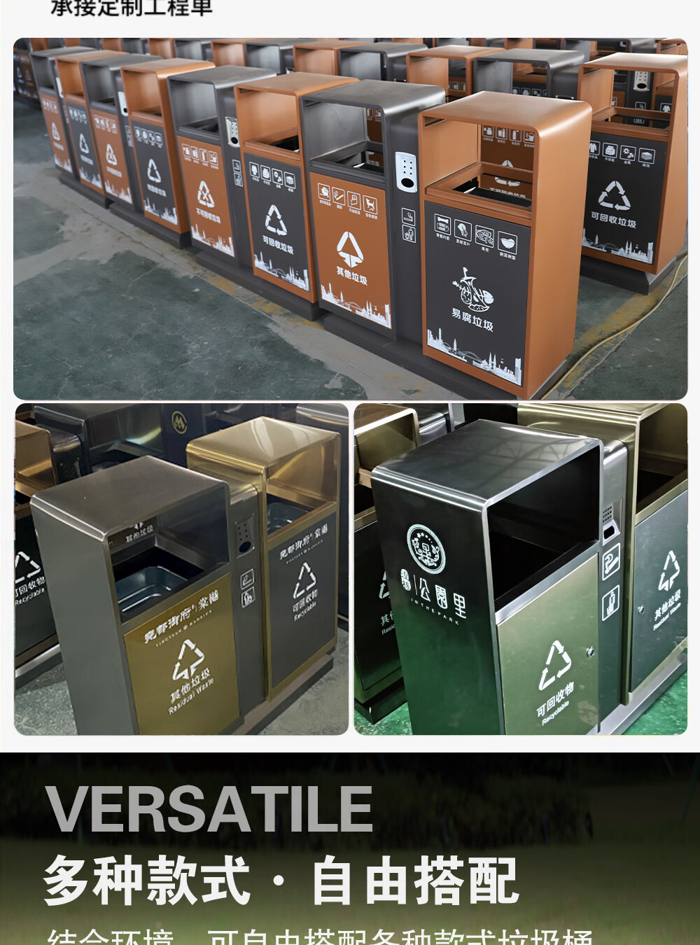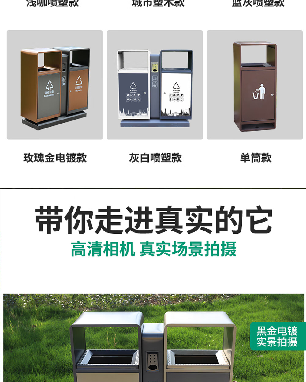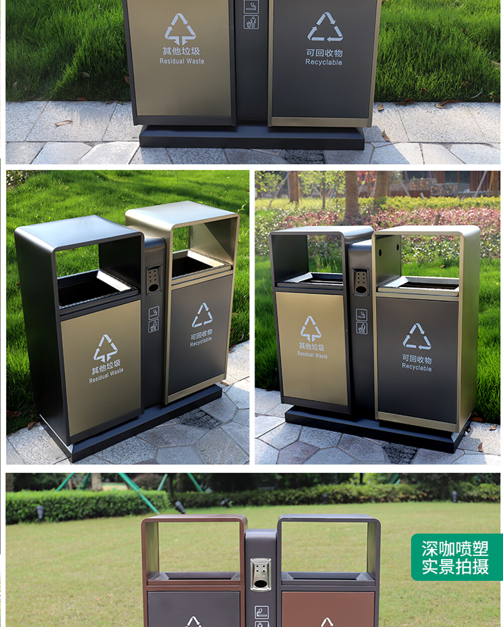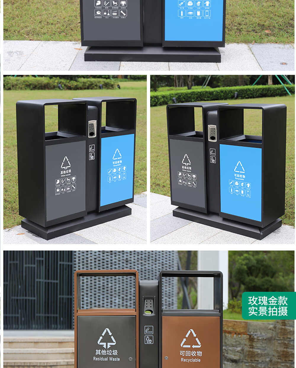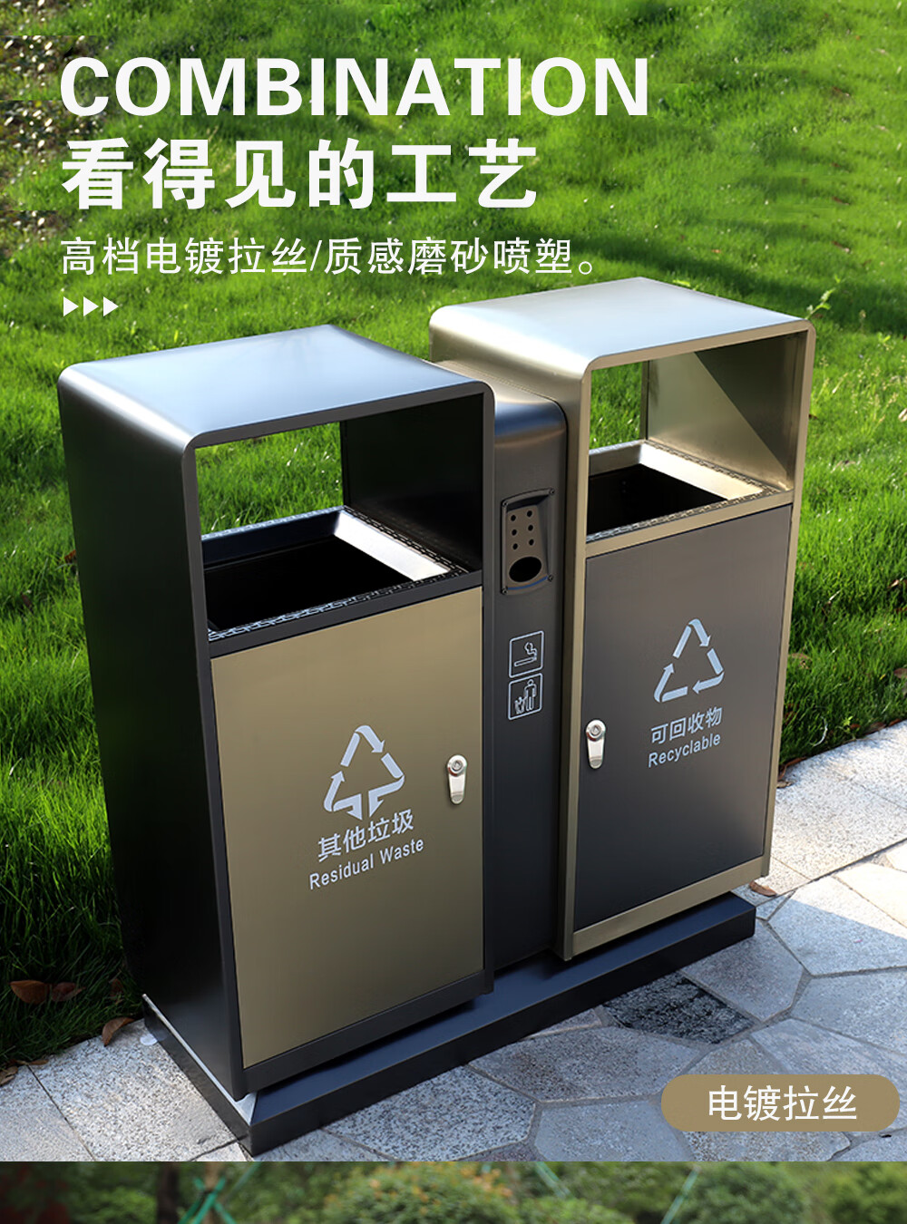 Outdoor trash can stainless steel customized large size classified sanitation community outdoor peel box property real estate commercial thickened 304# electroplating rose gold + black gold