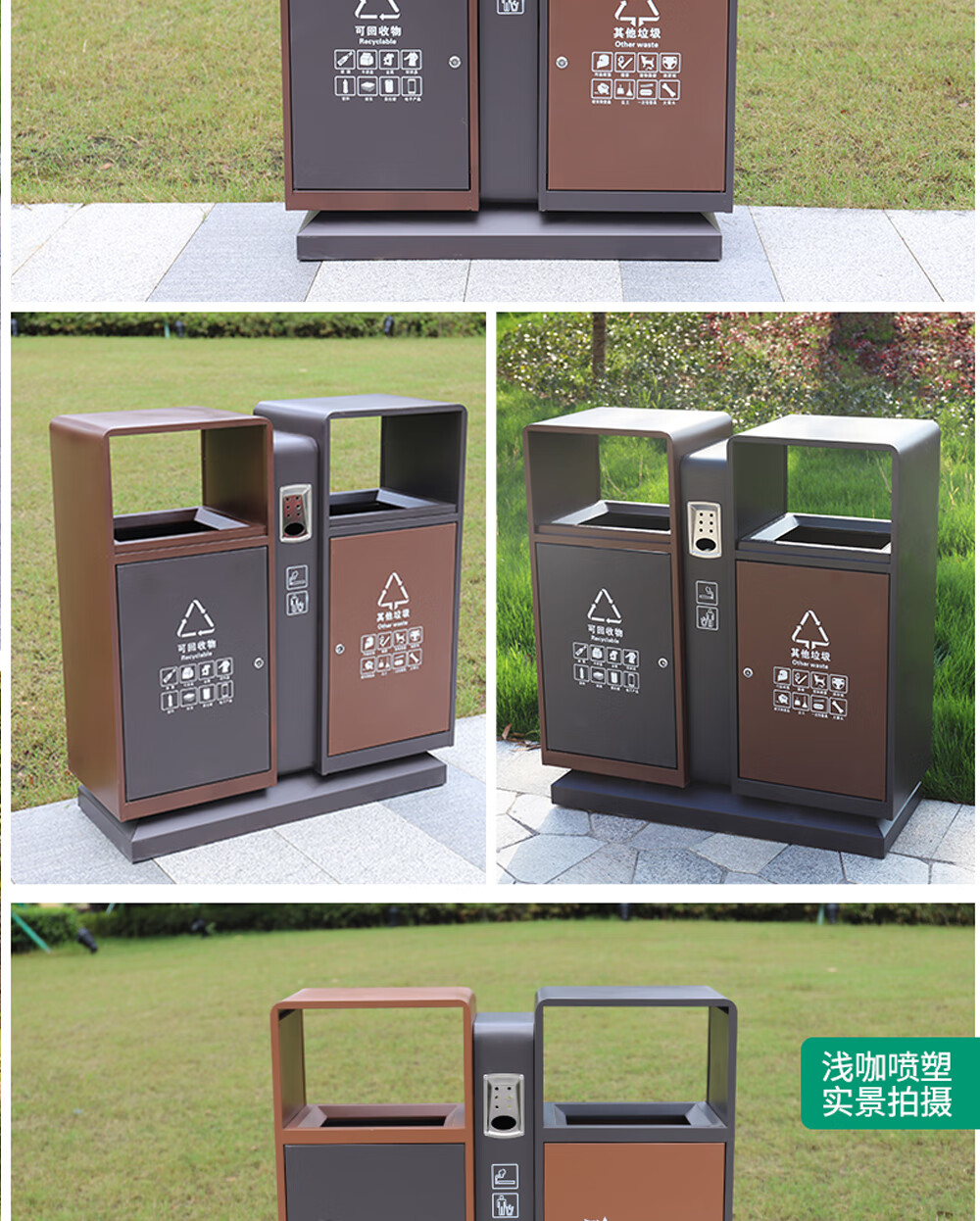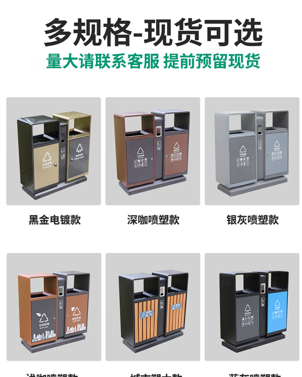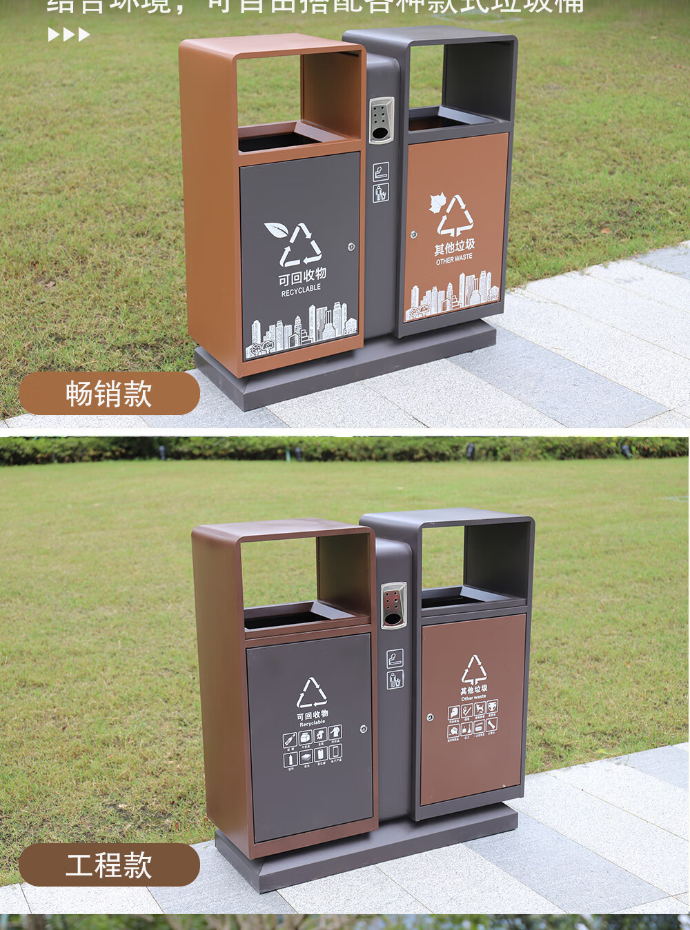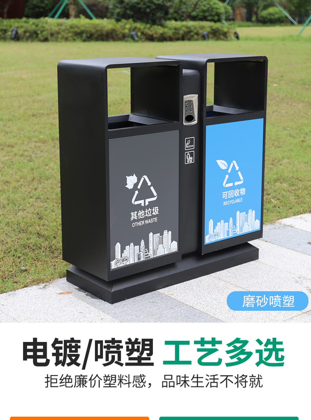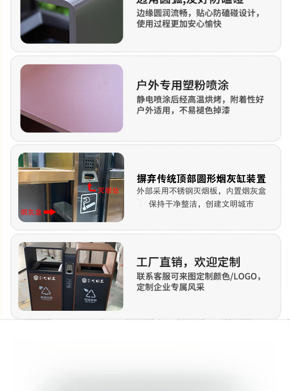 Outdoor trash can stainless steel customized large size classified sanitation community outdoor peel box property real estate commercial thickened 304# electroplating rose gold + black gold