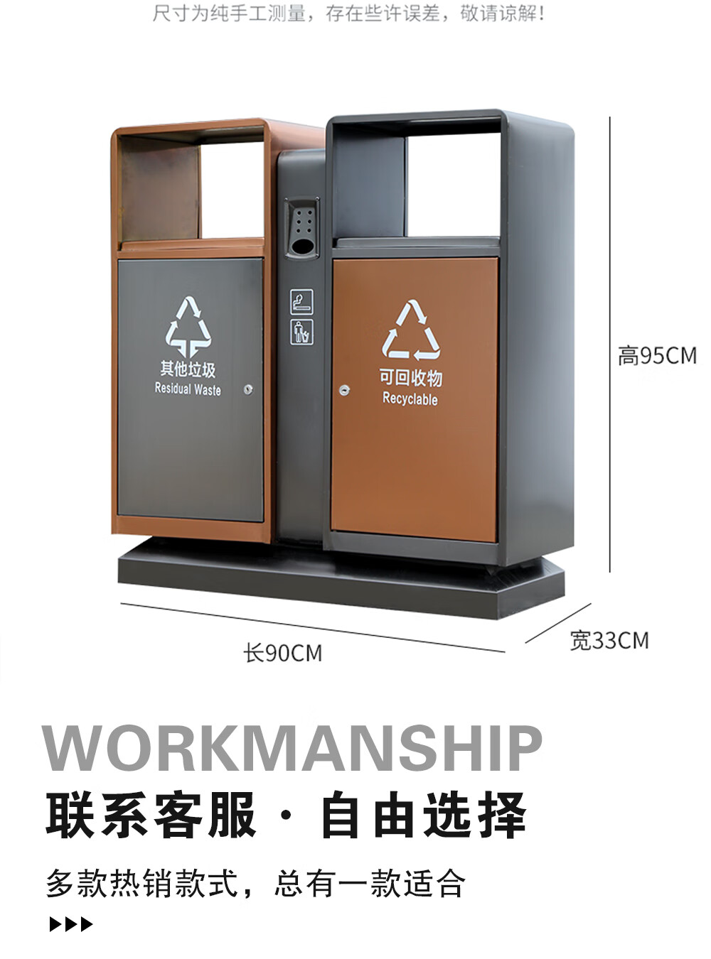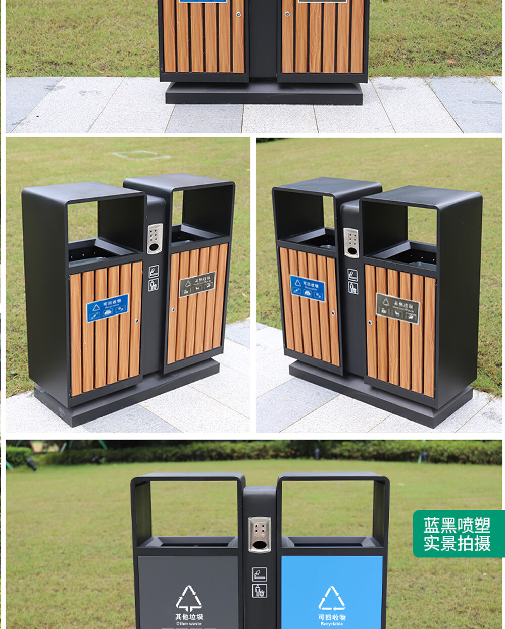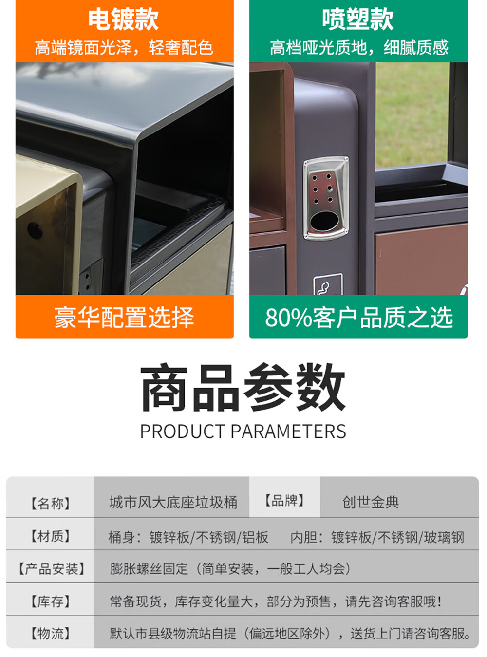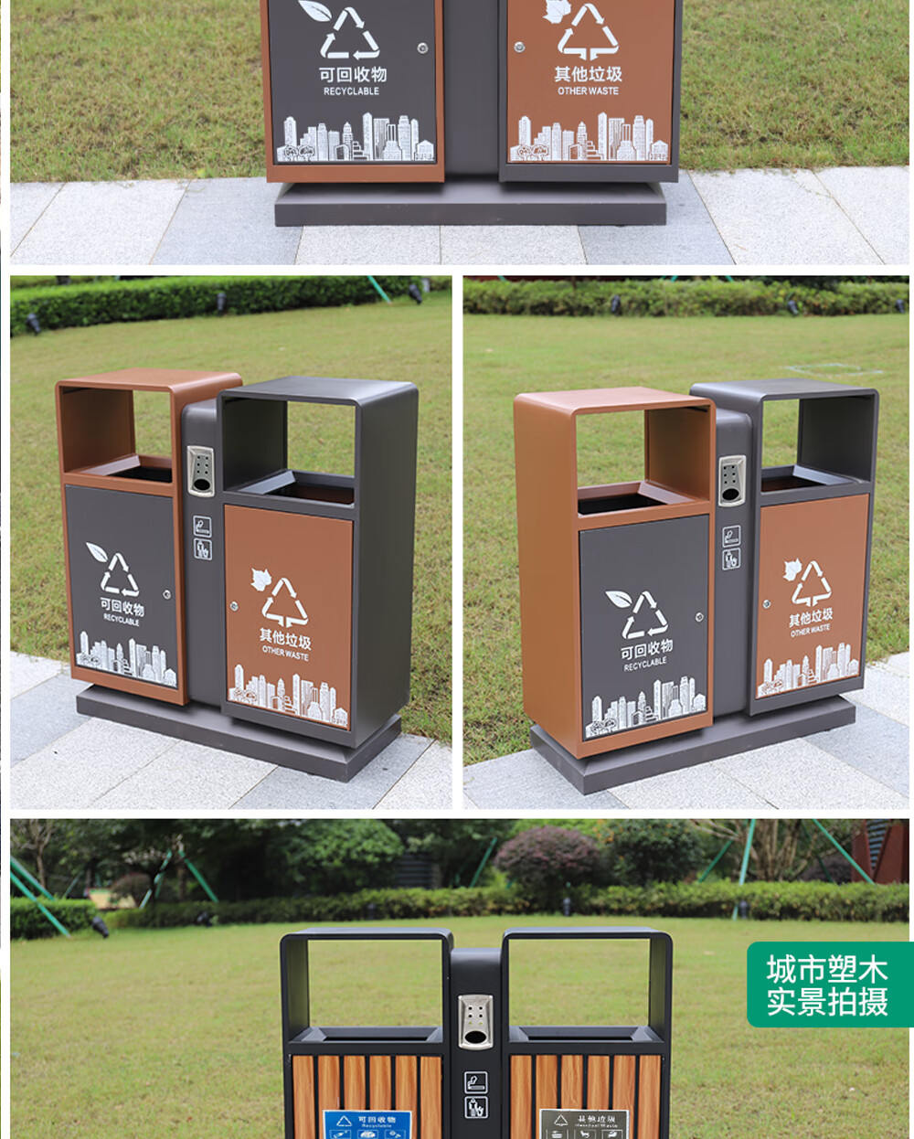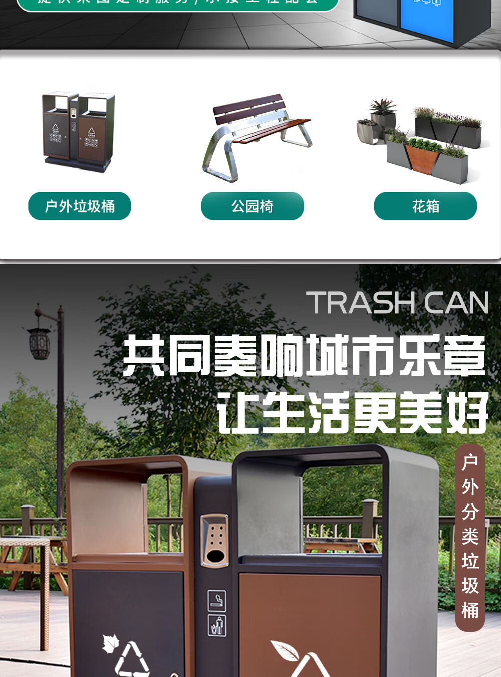 Outdoor trash can stainless steel customized large size classified sanitation community outdoor peel box property real estate commercial thickened 304# electroplating rose gold + black gold