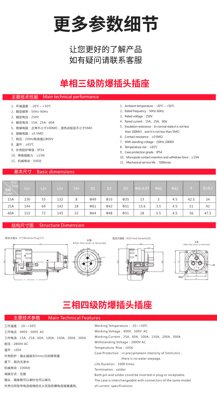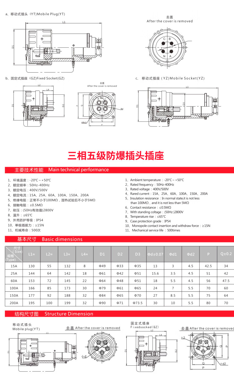 IIC explosion-proof non-sparking socket explosion-proof plug industrial connector fixed single-phase three-level mobile explosion-proof socket mobile set (male + female) three-phase five-pole (5 cores)_60A