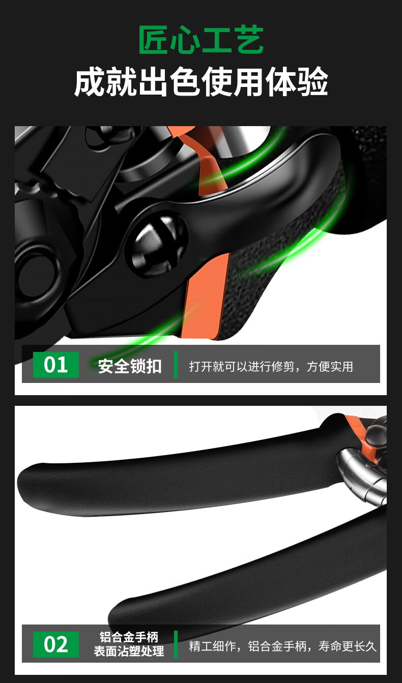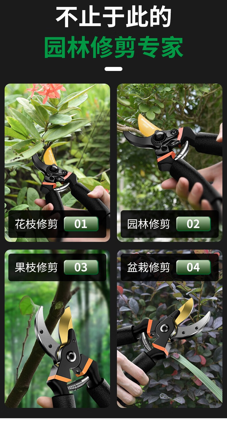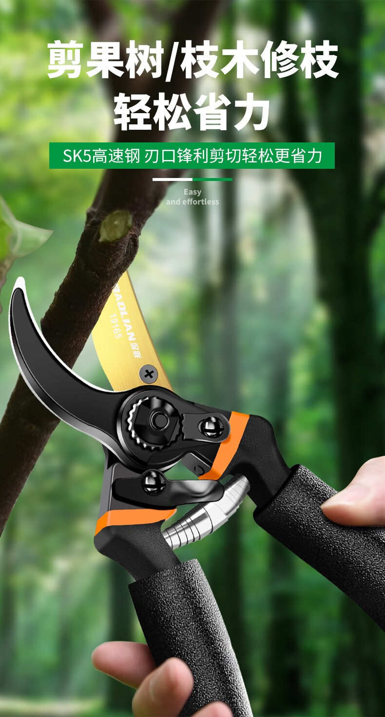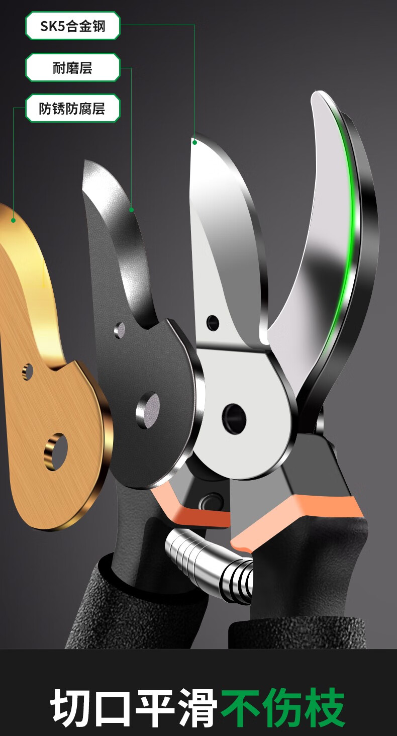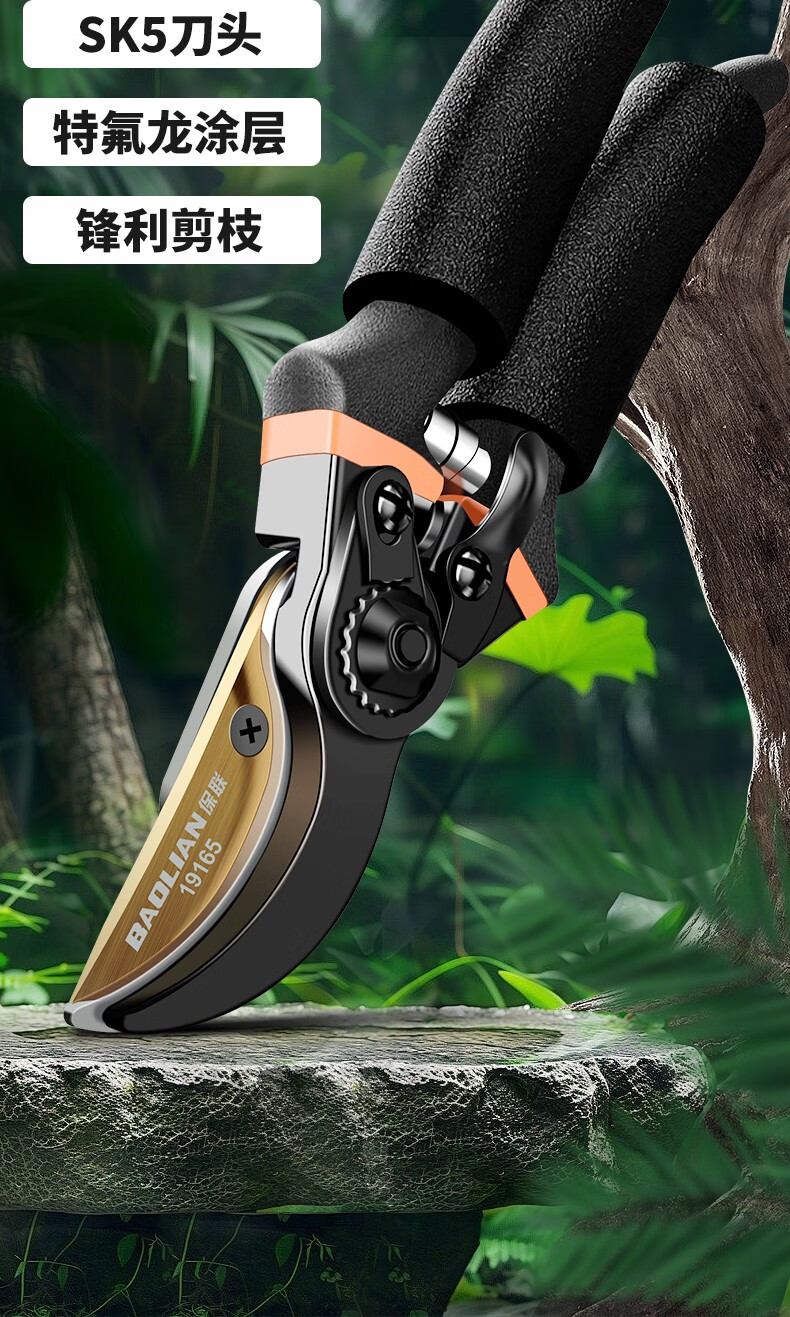 Baolian pruning scissors, labor-saving garden flower scissors, multi-functional fruit tree pruning special thick branch scissors gardening tools, hand guard gold and black diamond (SK5 finely ground blade)