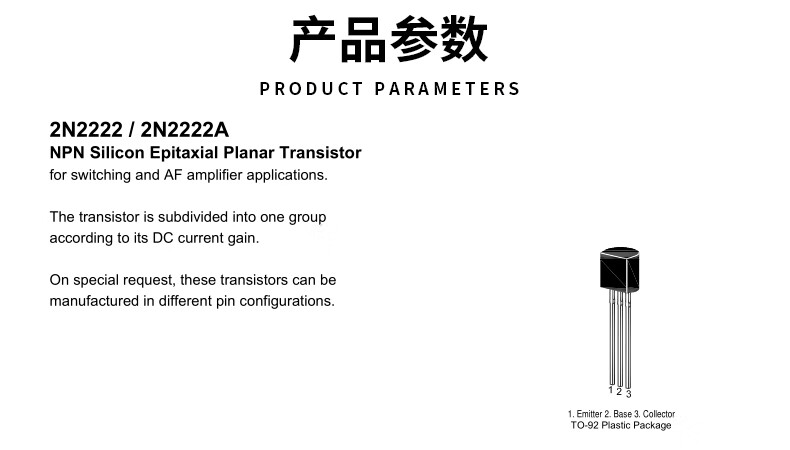 Transistor 2N2222A39044401 5551 2907A3906 4403 5401 direct plug TO-92 2N2222 direct plug NPN type (50 pieces) No specifications