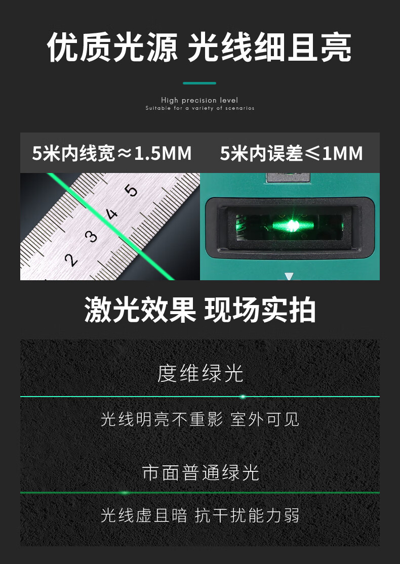 Duwei green light level meter high-precision strong light thin line outdoor five-line laser automatic line leveling meter ultra-bright green light 5-line standard set