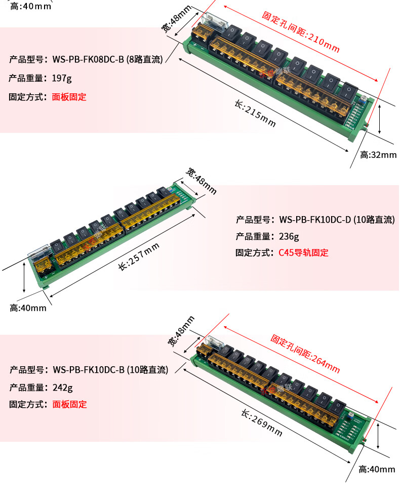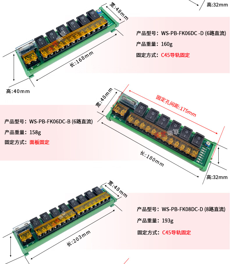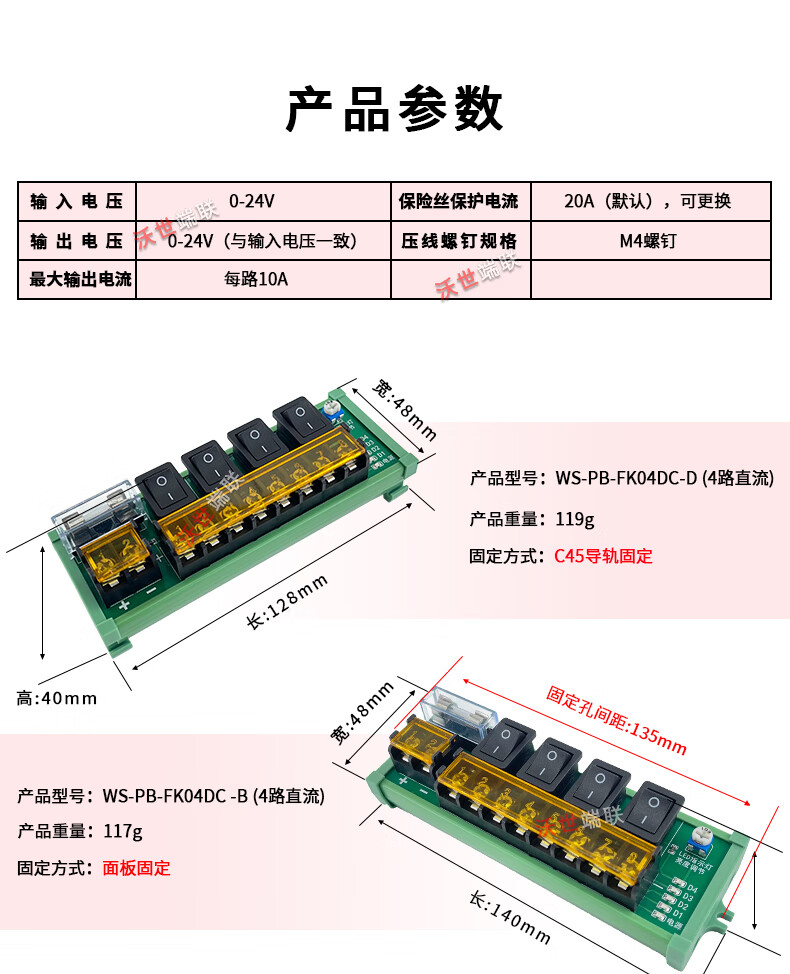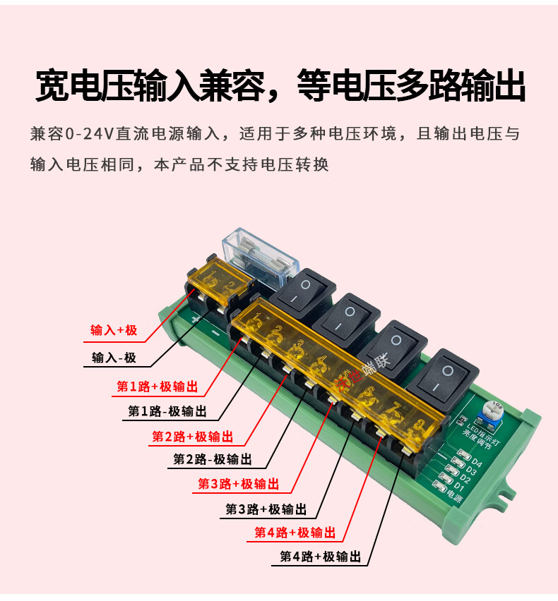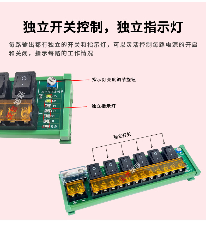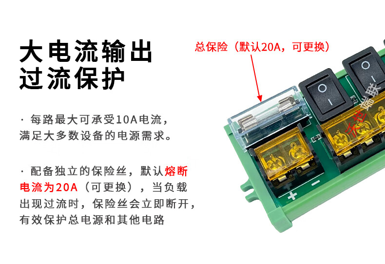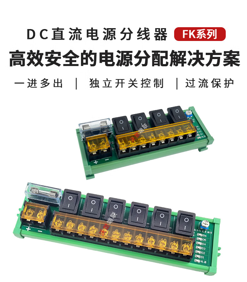 4/6/8/10-channel DC power extension cord, main fuse of line distributor is independently opened, 8-channel DC-rail fixed, DC below 24V