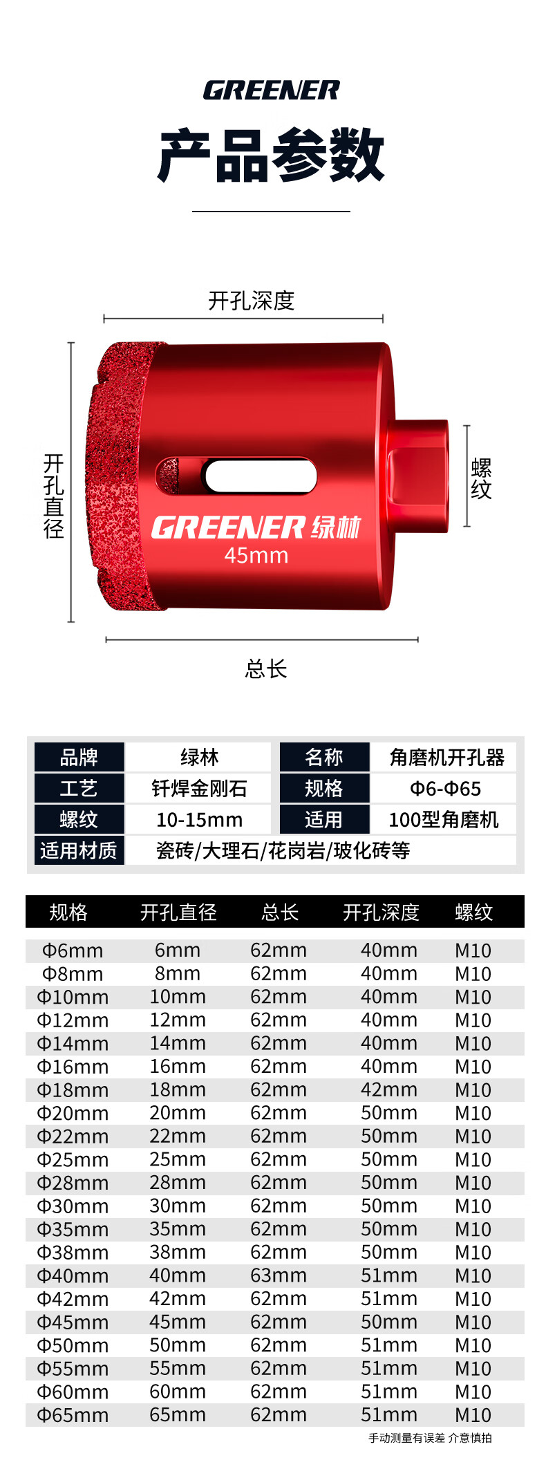 Green forest angle grinder hole opener ceramic tile drill bit for drilling glass marble material special hand grinder artifact dry rotation dry drilling 20mm 2 pieces