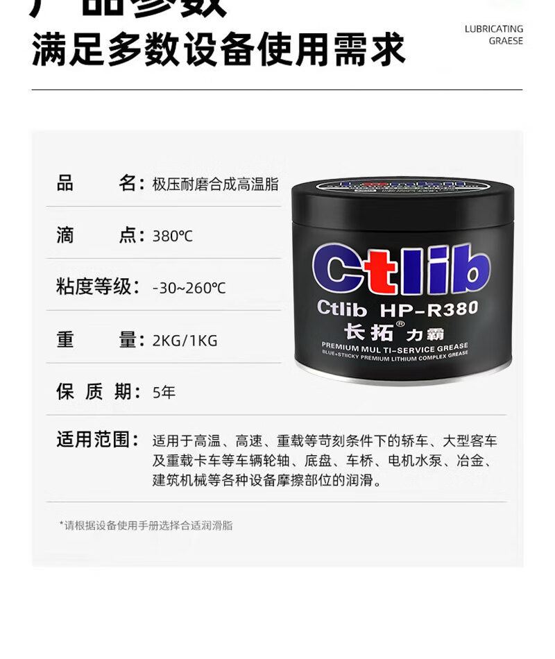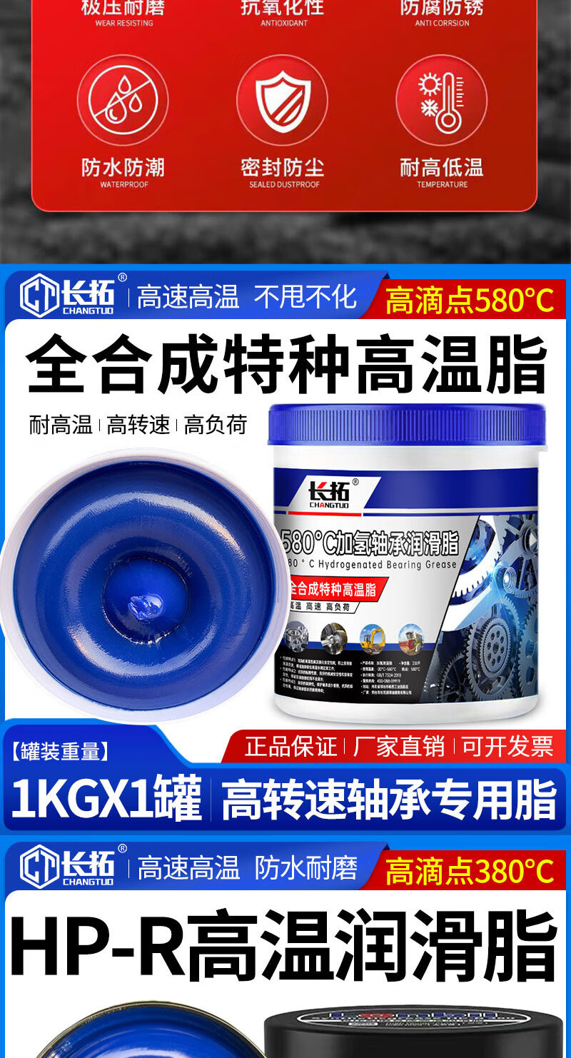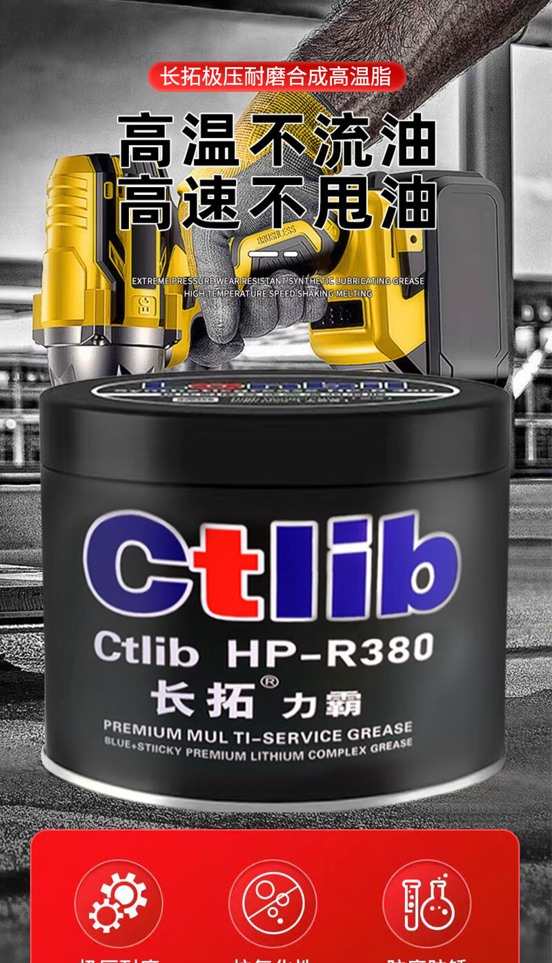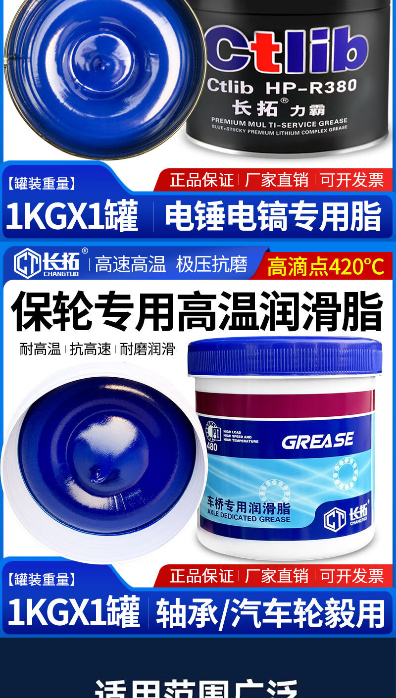 Changtuo blue high temperature resistant grease electric hammer pick machine lubricant lithium grease high speed bearing car universal butter 1KG Liba dropping point 380 high temperature grease 600g 1 can free scraper brush gloves