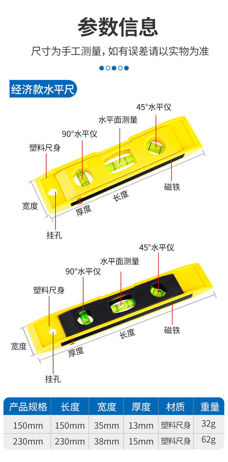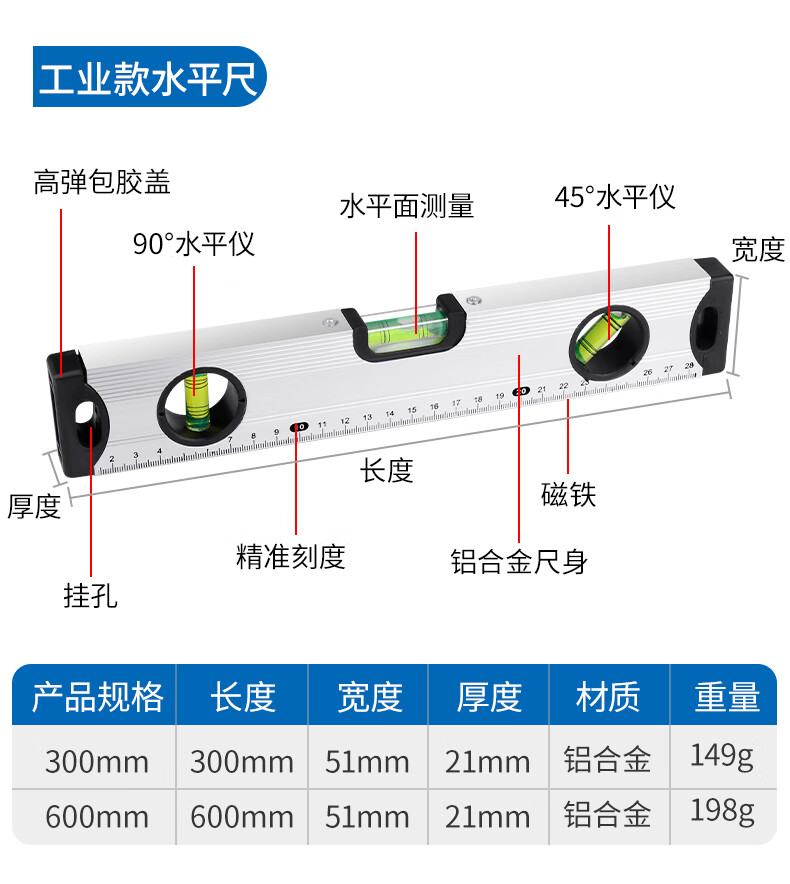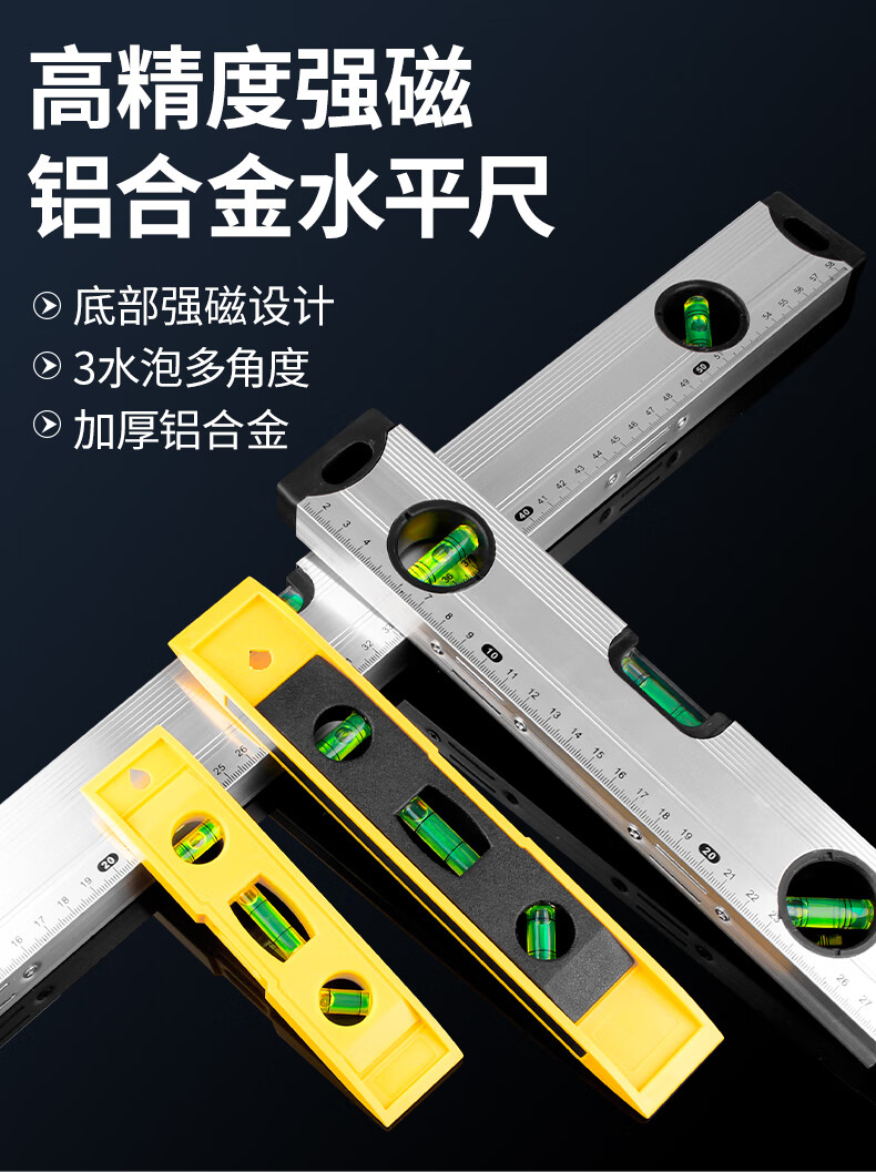 Deer fairy level high-precision small anti-fall aluminum alloy solid balance measuring instrument strong magnetic household tool ruler economical strong magnetic high-precision level yellow B