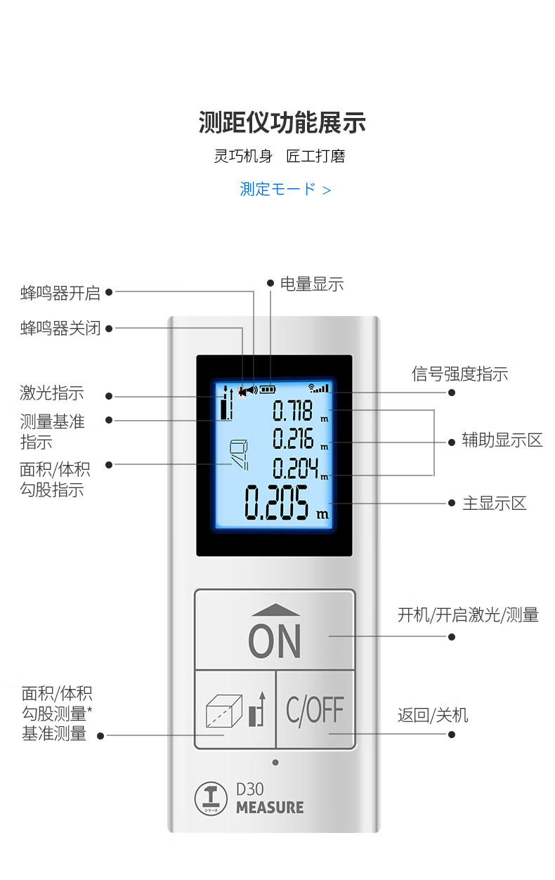Green Forest Mini Laser Distance Meter Handheld High-Precision Electronic Ruler Measurement Distance Measurement Artifact 50 Meters - Loden Green (High-Bright Display) Multi-Function