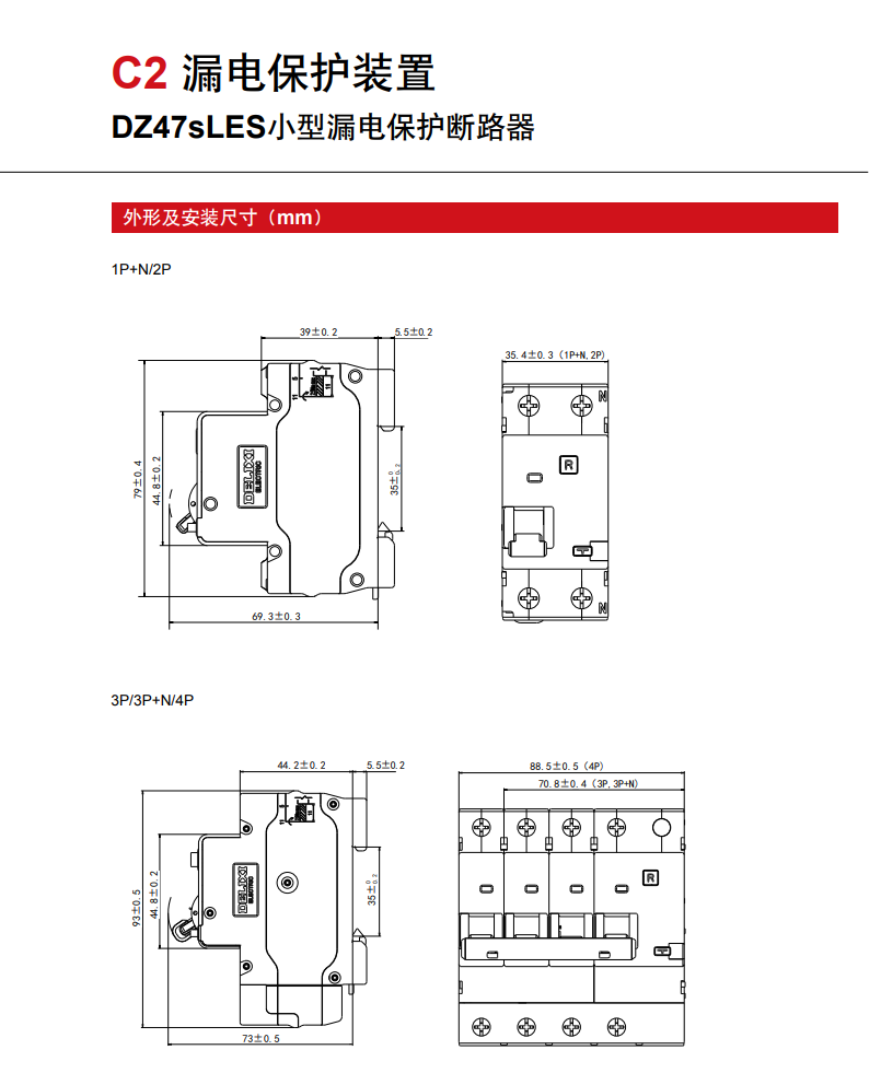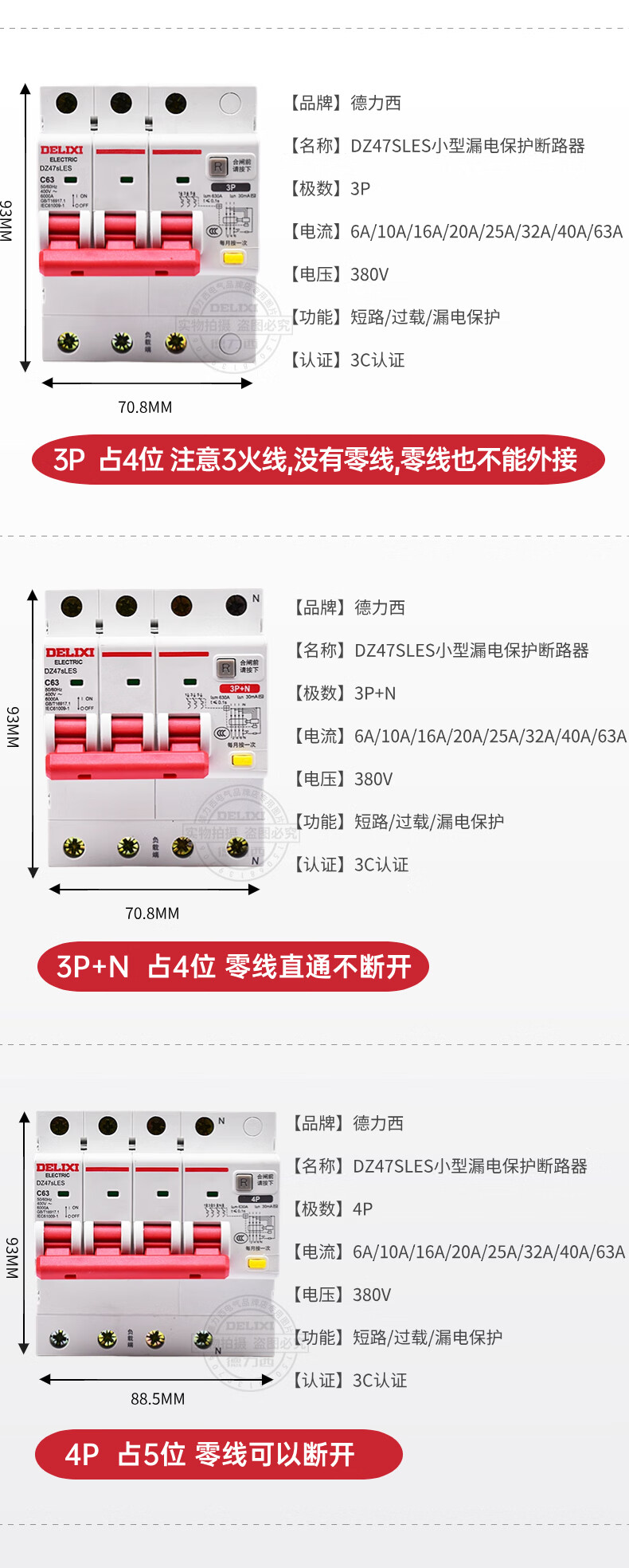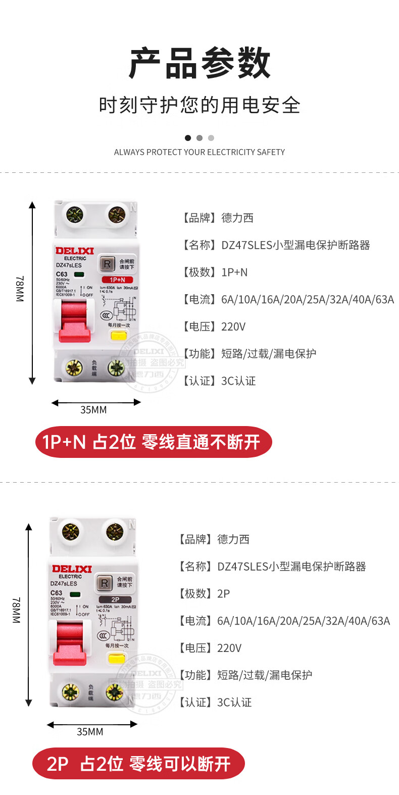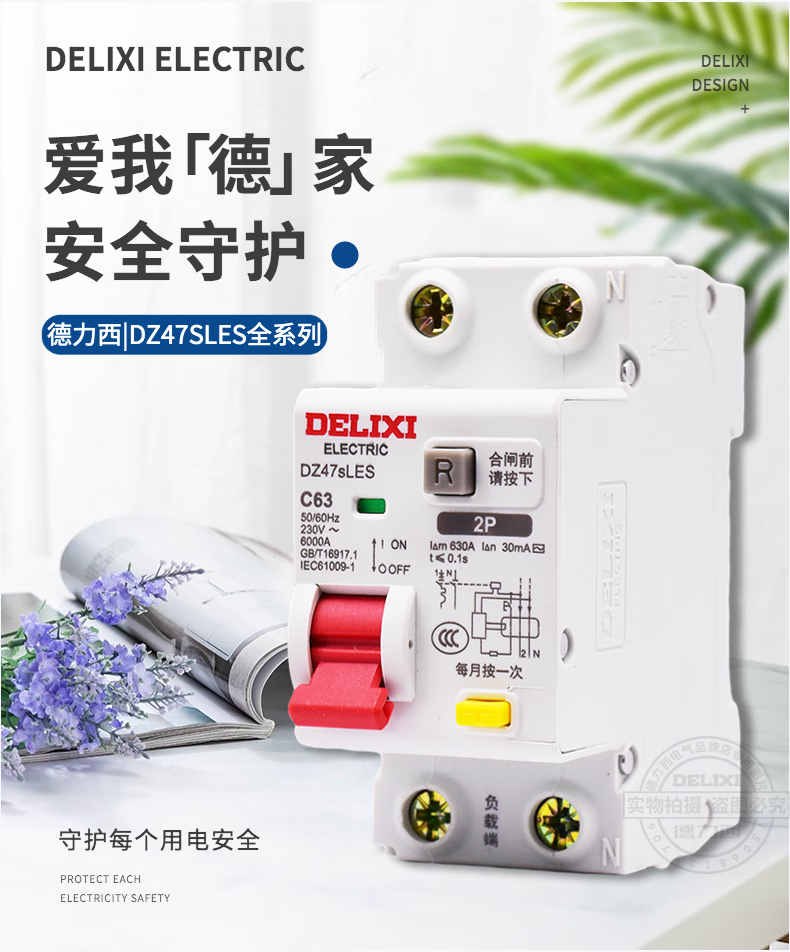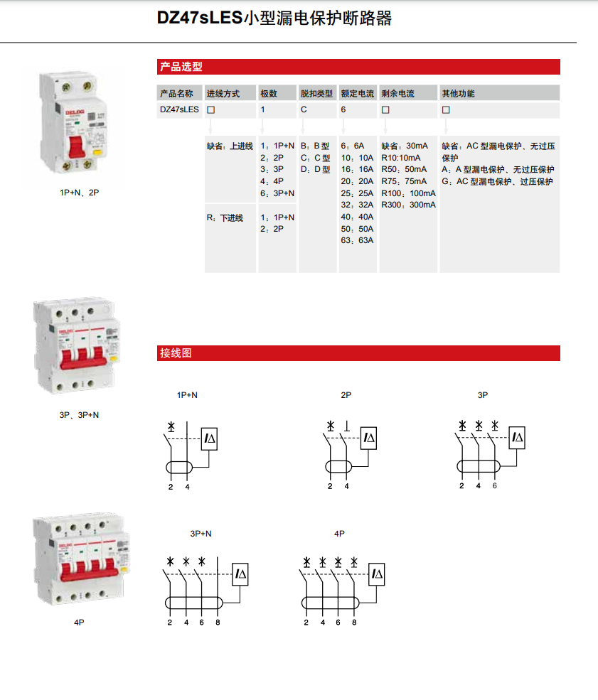 DZ47sLES small type C leakage protection circuit breaker 3P/3P+N/4P upper incoming line 10A 2P