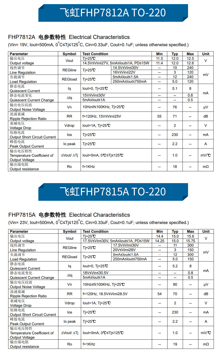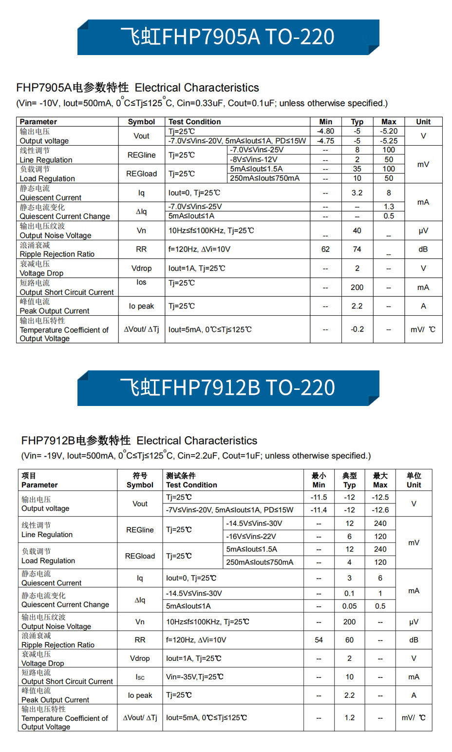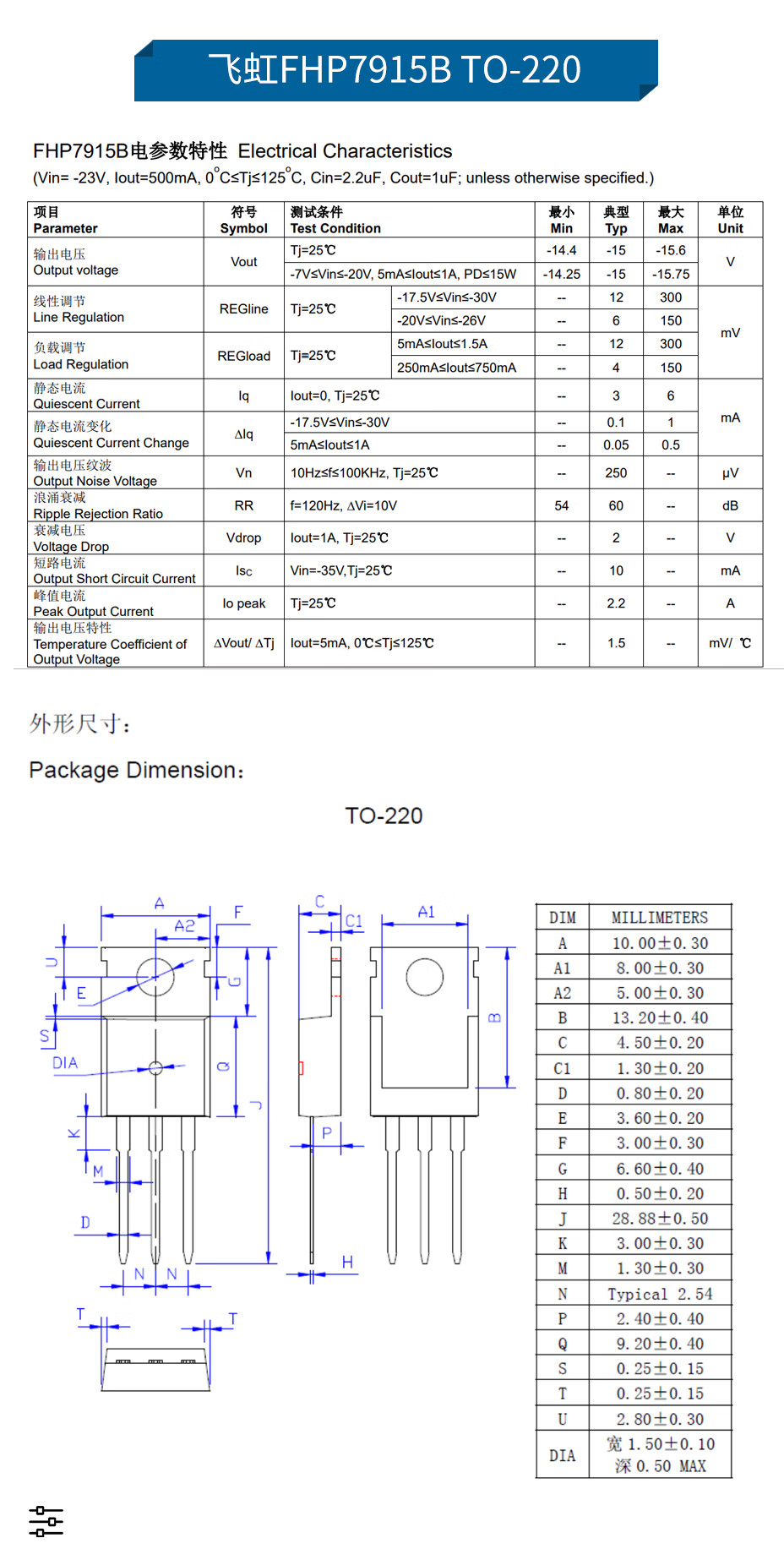 Original genuine Feihong FHP7805/7808/09/12/15/24/7905/7912/915A voltage stabilizing IC Feihong FHP7915BTO-220 No specifications