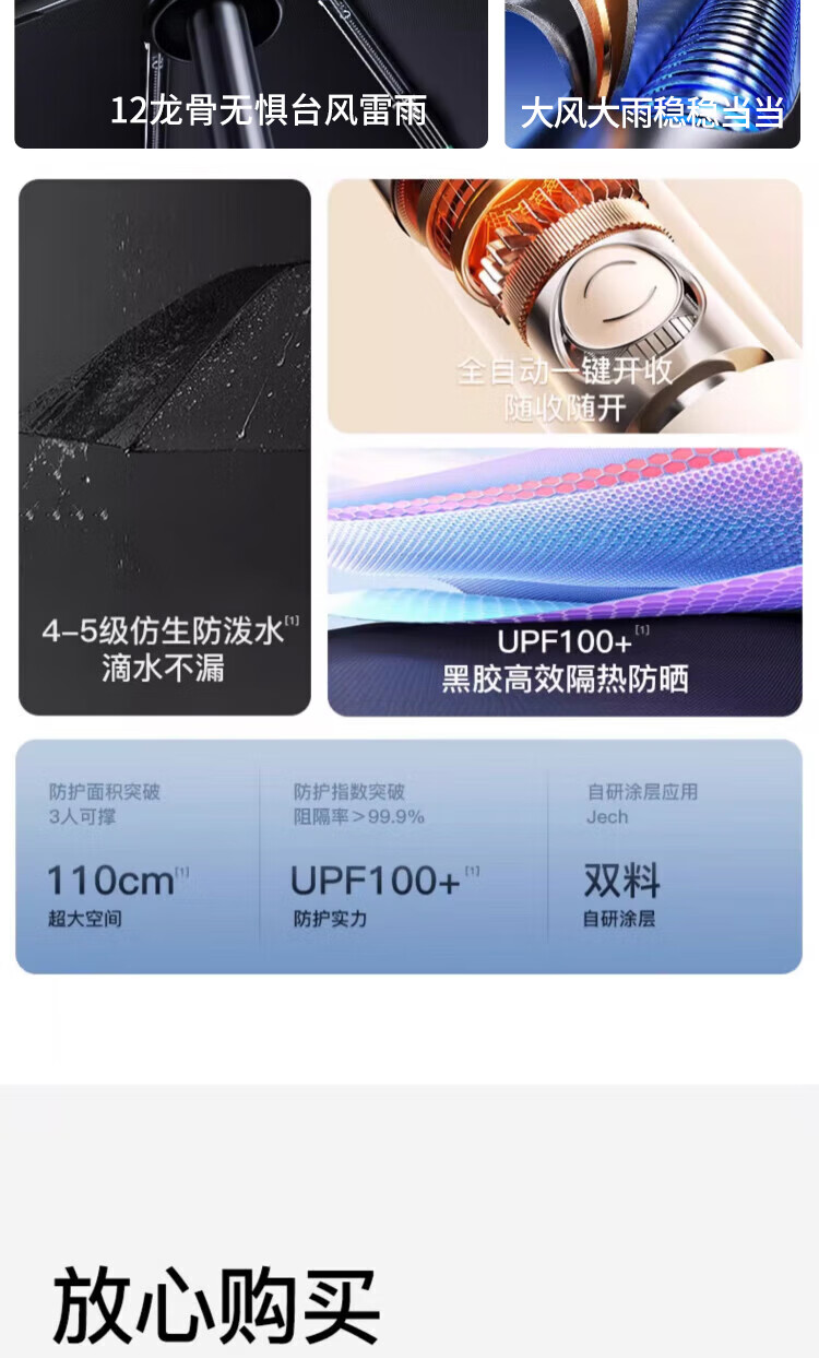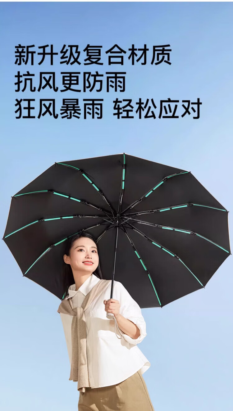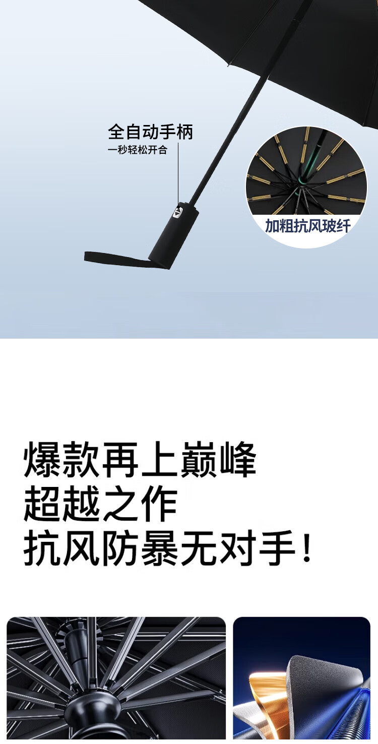 Miss Ai fully automatic umbrella reinforced rib umbrella sun umbrella anti-ultraviolet vinyl sunscreen parasol 120 rib vinyl fully automatic black
