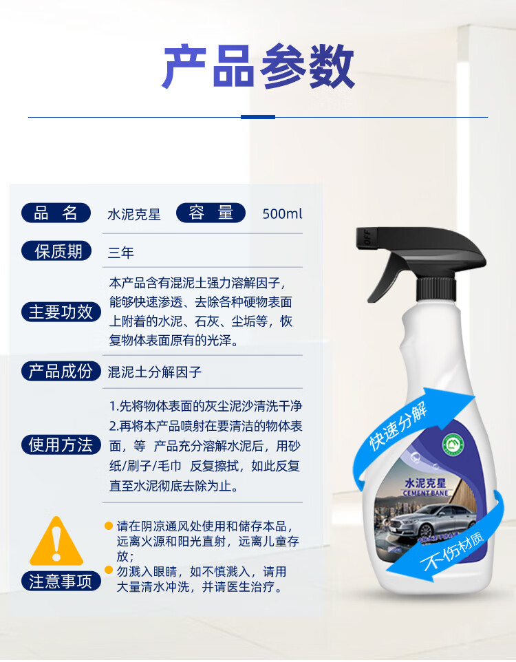 Cleaning agent cement dissolving agent remover paint cleaner car paint remover concrete artifact 500ML_3 bottles cement nemesis