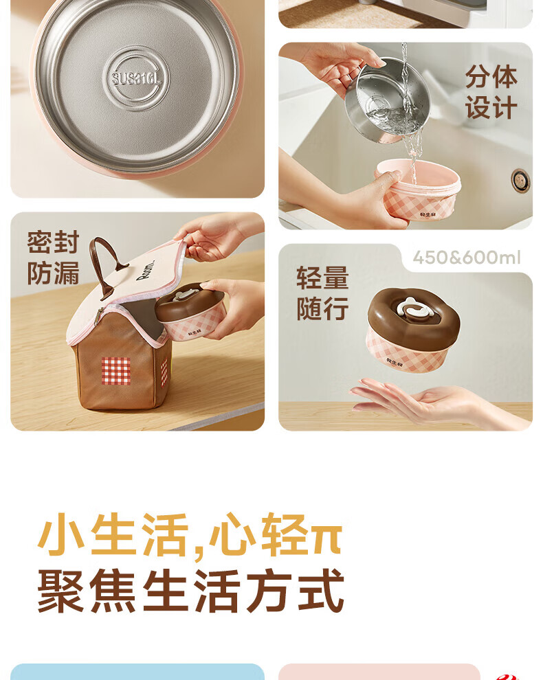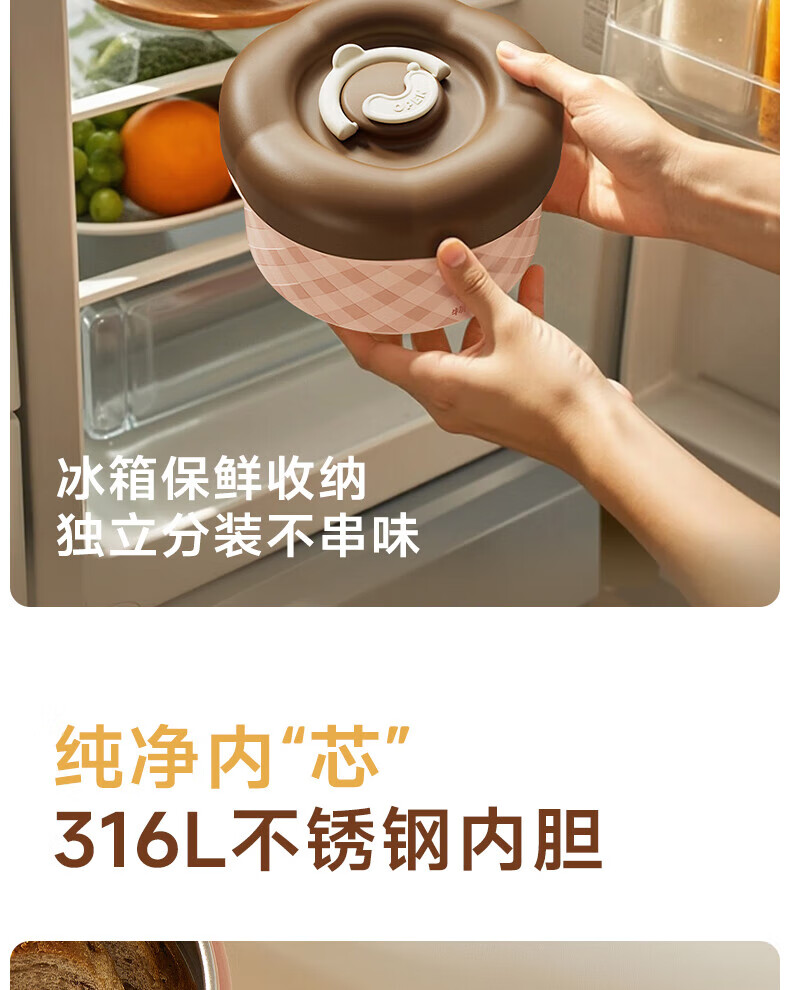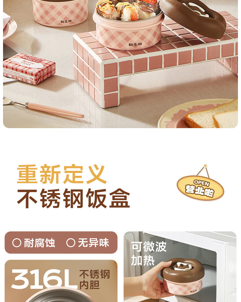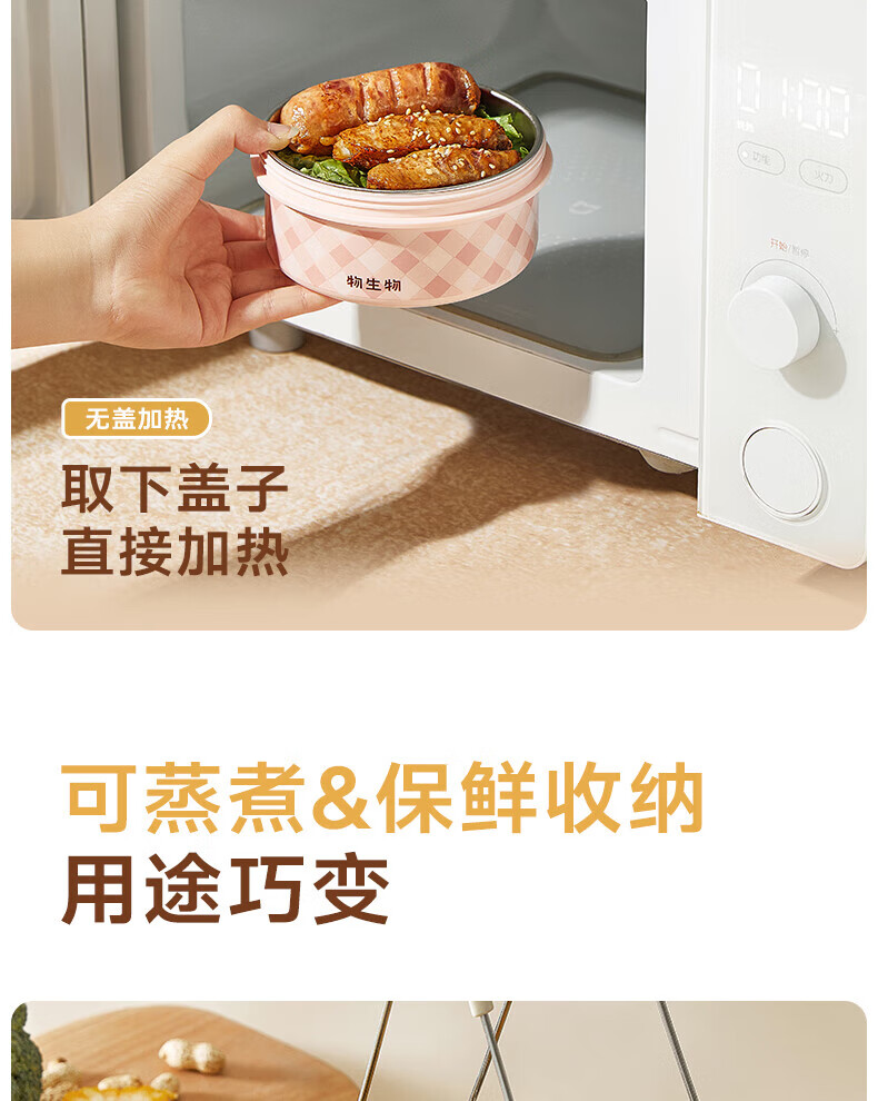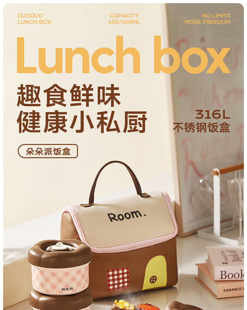 RELEA Insulated Lunch Box for Office Workers Microwaveable Lunch Box 316L Stainless Steel Student Portable Multi-New Year Gift 600ml Single Pack