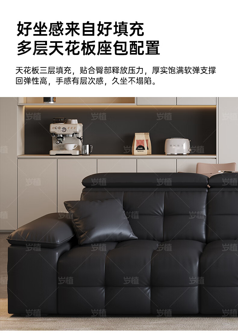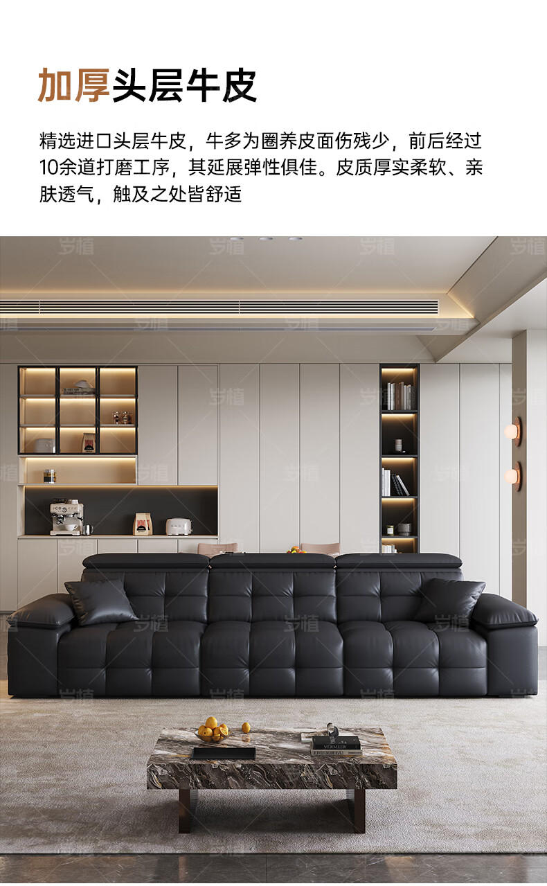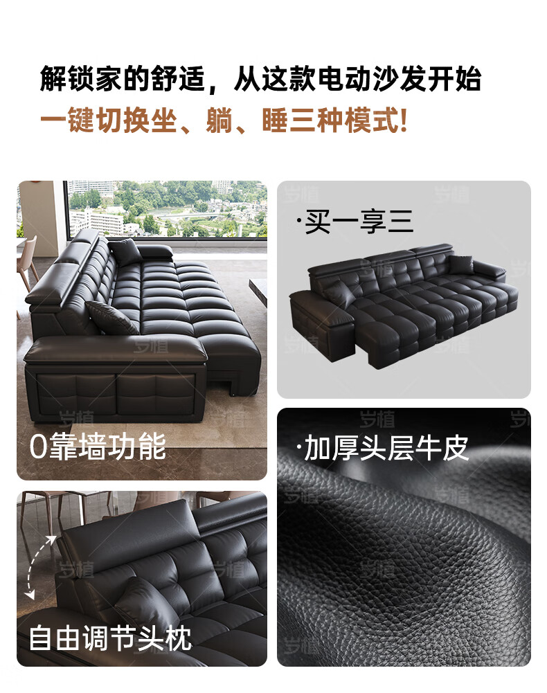 Suizhi functional sofa government subsidy sofa living room 2025 new minimalist Lawrence leather sofa electric sofa 2.9 meters four-seater three-motor electric telescopic luxury version contact surface S++ grade thickened first layer cowhide