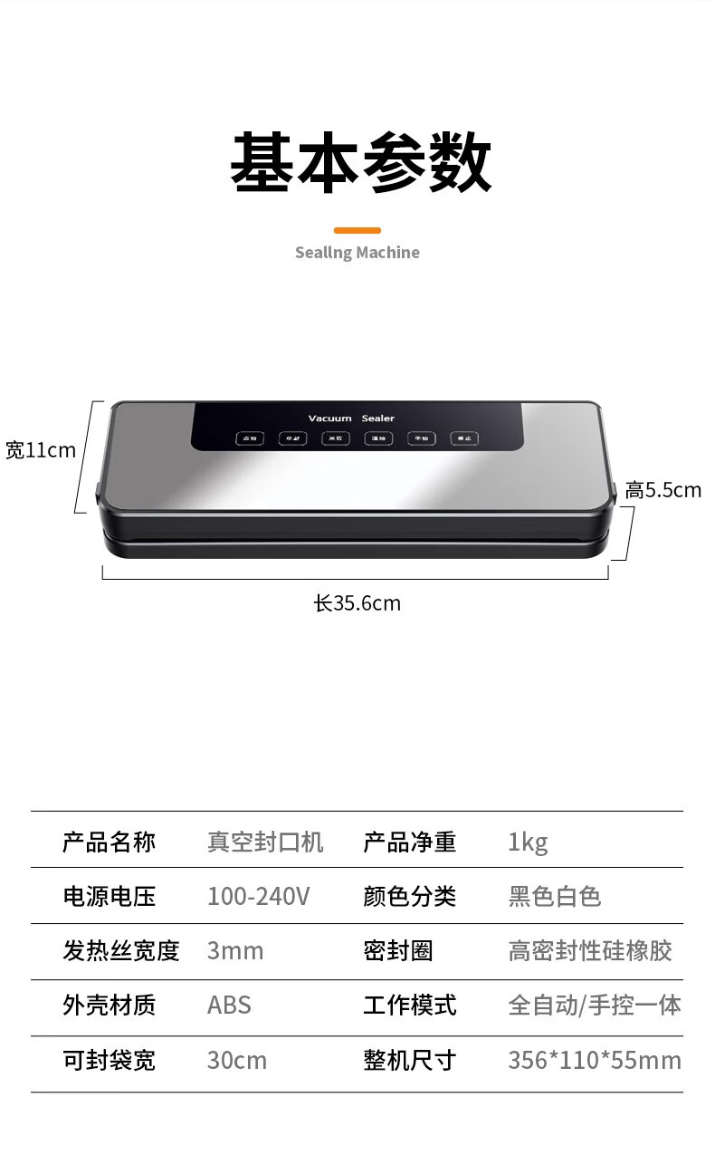 DIKTT German vacuum sealing machine household commercial dry and wet dual-use fully automatic vacuum packaging machine high-power plastic sealing machine without bagging bacon sausage food antibacterial fresh-keeping machine Frost Gray Purple Light Sterilization +100 Sterile Bags 35cm