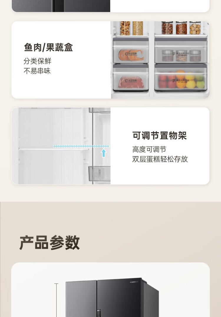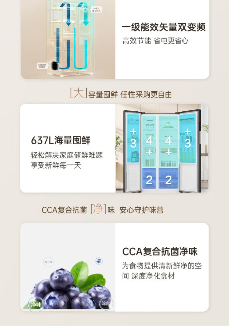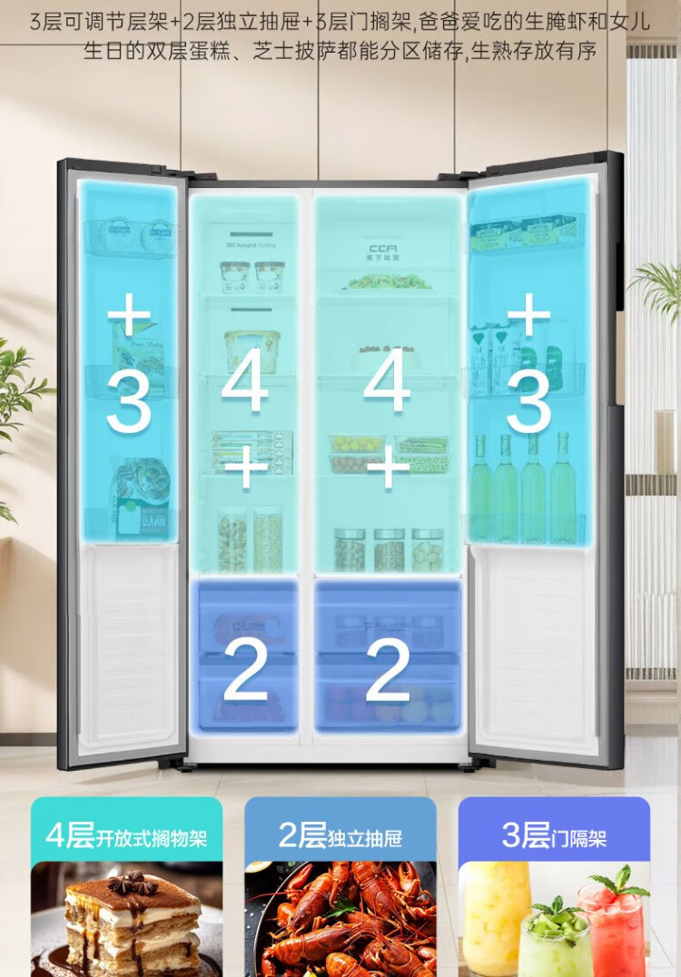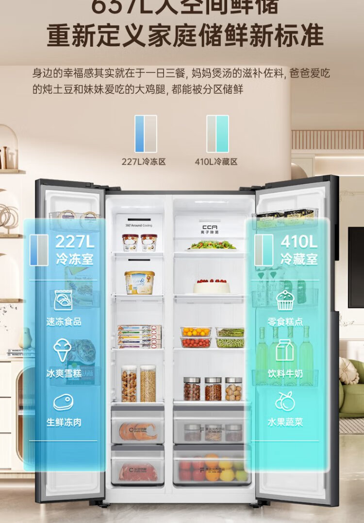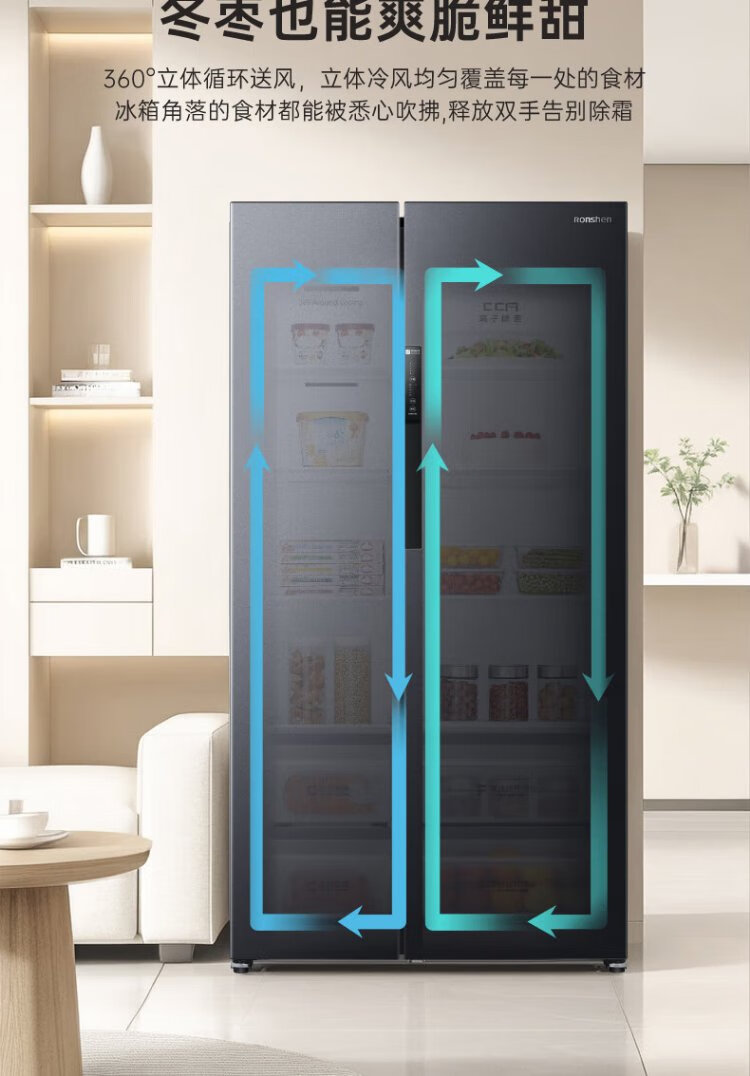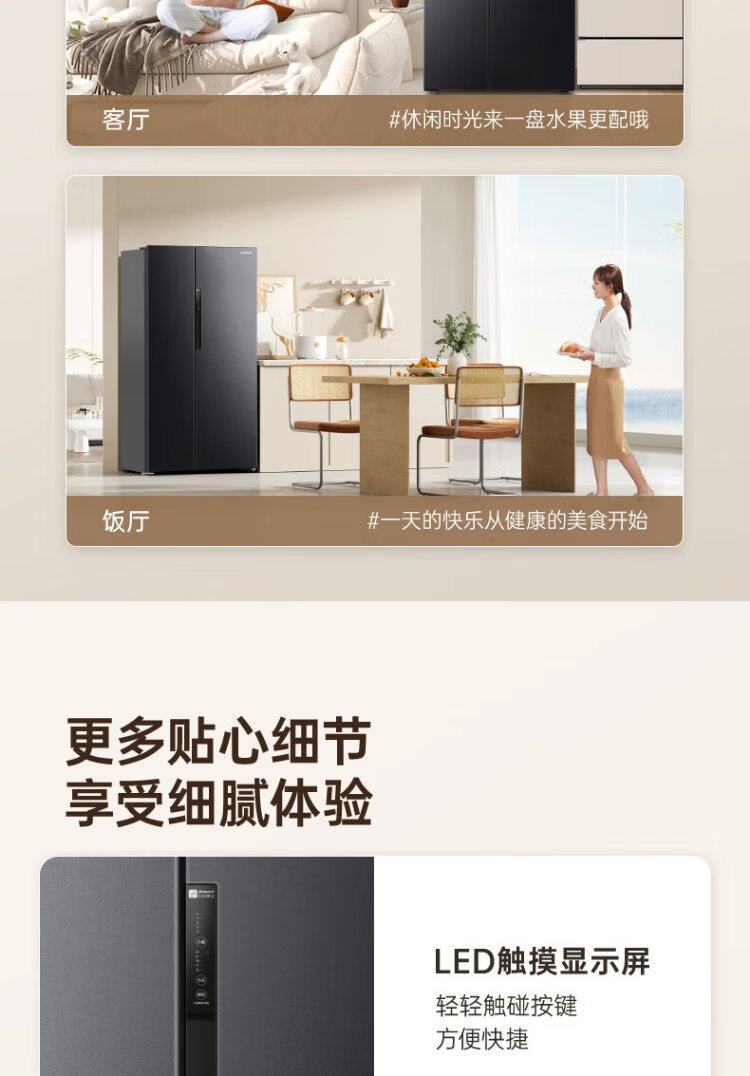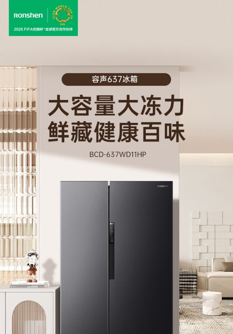 Rongsheng 637-liter double-door door-to-door refrigerator household first-class air-cooled frost-free frequency conversion energy-saving ultra-thin large capacity BCD-637WD11HP trade-in national subsidy aircraft carrier capacity 637-liter refrigerator first-class energy efficiency dual frequency conversion