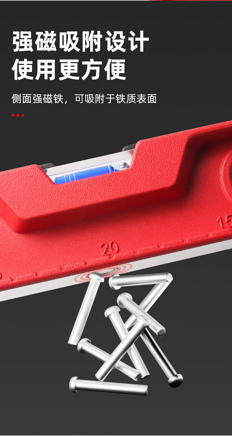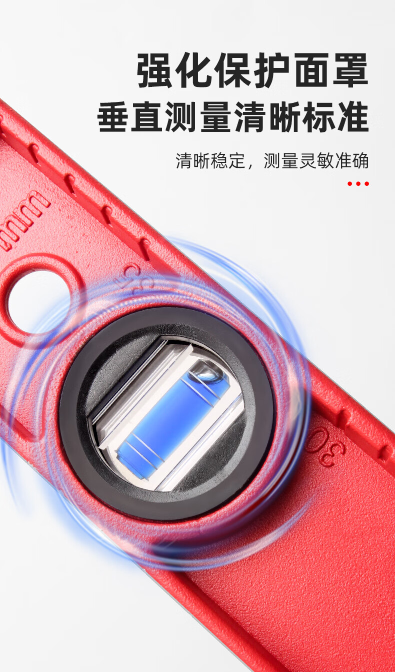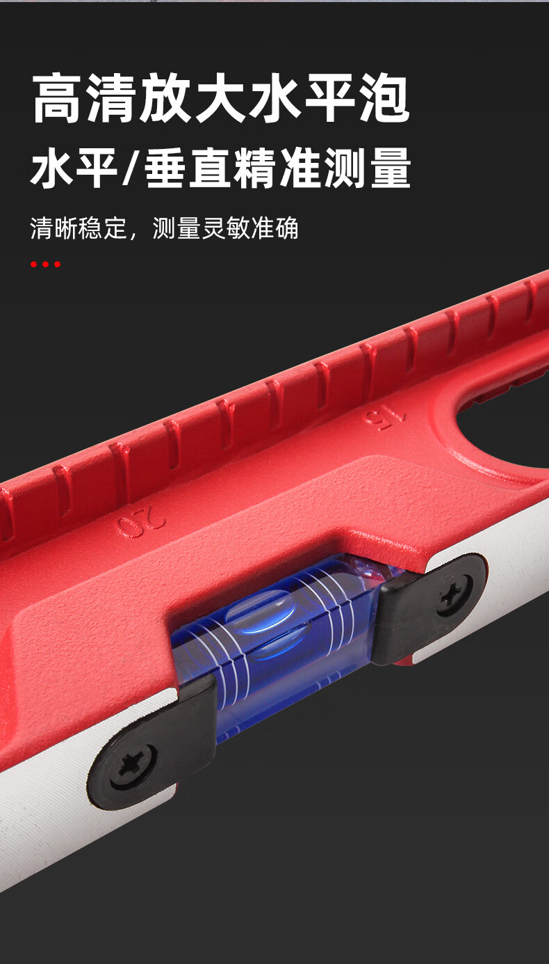 Superior high-precision solid cast aluminum level ruler strong magnetic household leveling instrument aluminum alloy anti-fall balancing instrument industrial grade solid cast aluminum 30cm strong magnetic red