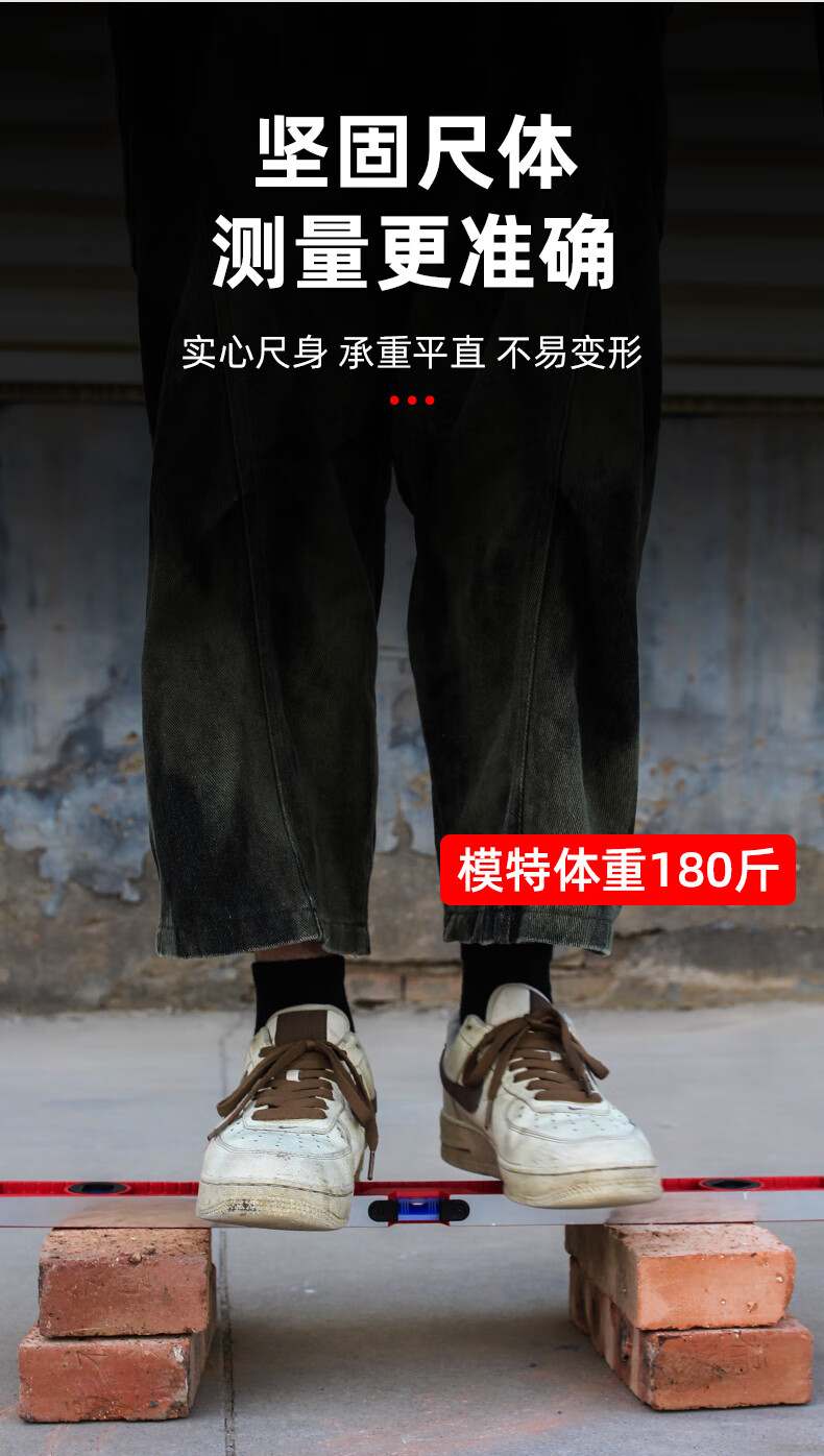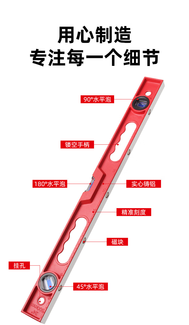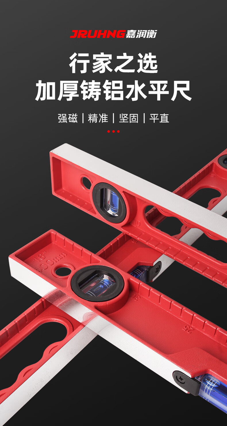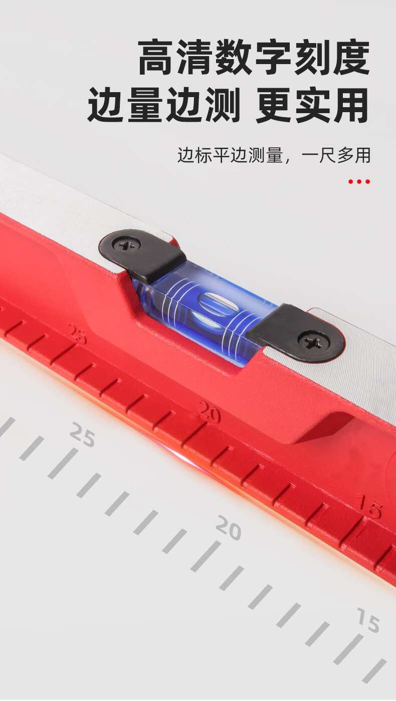 Superior high-precision solid cast aluminum level ruler strong magnetic household leveling instrument aluminum alloy anti-fall balancing instrument industrial grade solid cast aluminum 30cm strong magnetic red